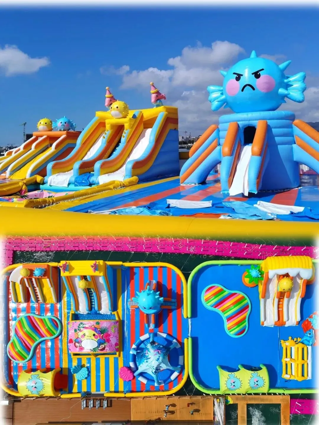 灵活定制:无论是300㎡的小型湖面,还是5000㎡的广阔库区,均可根据水域形状、面积定制尺寸;主题可按需设计,童话风、海洋风、卡通IP联名等风格任选,免费出图优化,让你的水上城堡成为独树一帜的景区地标;