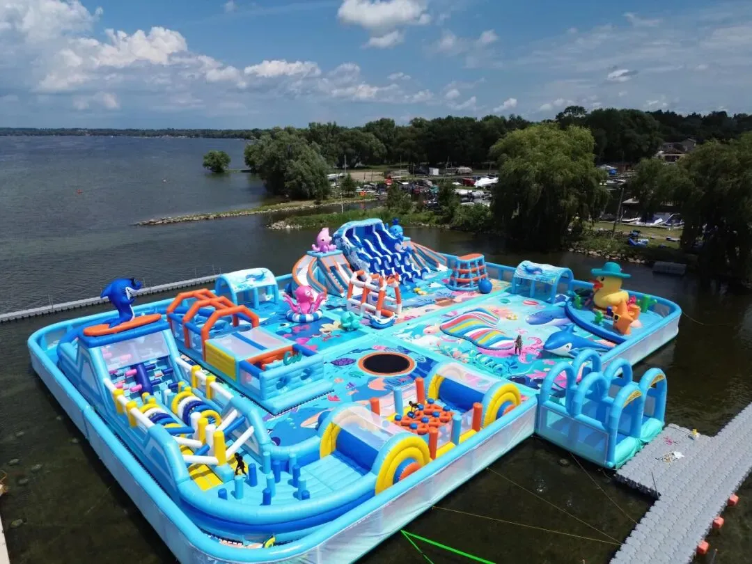 区别于传统陆地充气城堡,我们的水上充气城堡以“漂浮设计”为核心,无需改动水域原貌、不占用稀缺土地资源,只需一片平整水域,就能快速搭建起一座梦幻的儿童水上乐园。