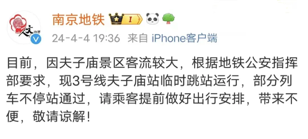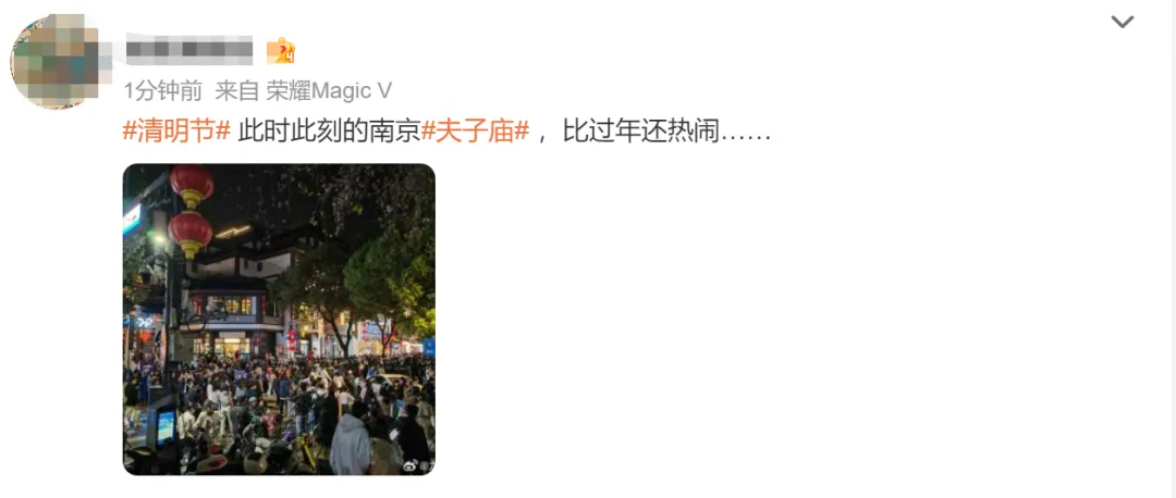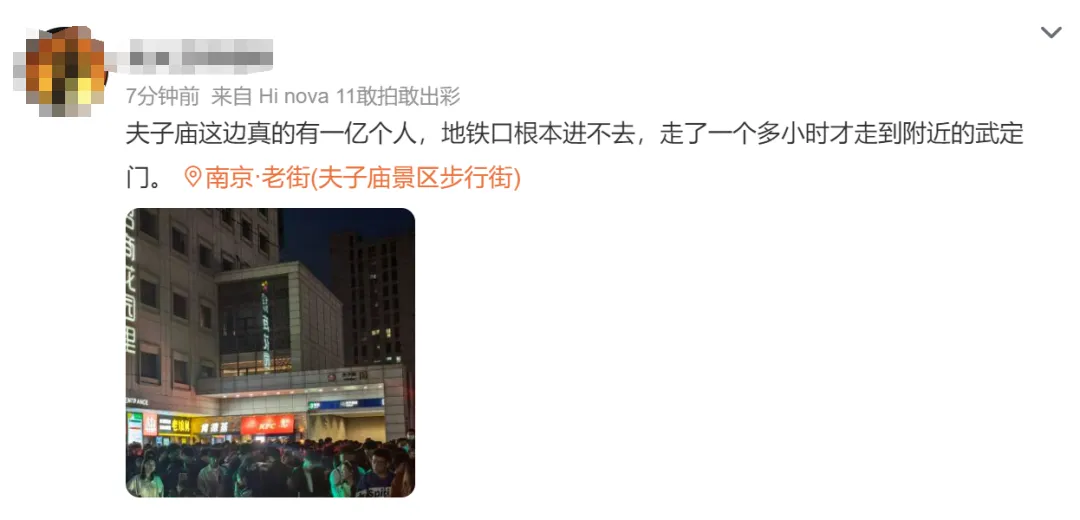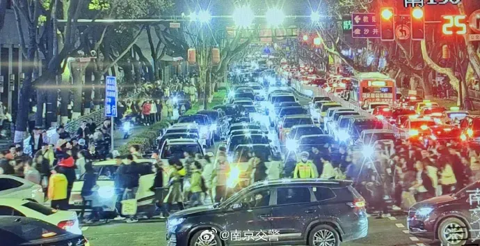 当日,南京交警发布提醒,夫子庙景区客流量大,建议机动车注意绕行,游客朋友们错峰前往。