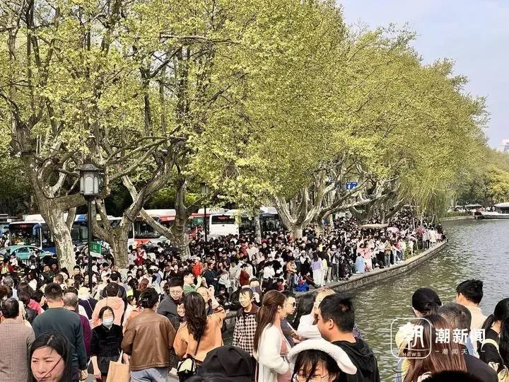 据潮新闻,今天(4月5日)的西湖边,大批游客涌入风景区观光游玩,断桥又进入了假期最熟悉的“人从众”模式,“桥面像铺满了人”。