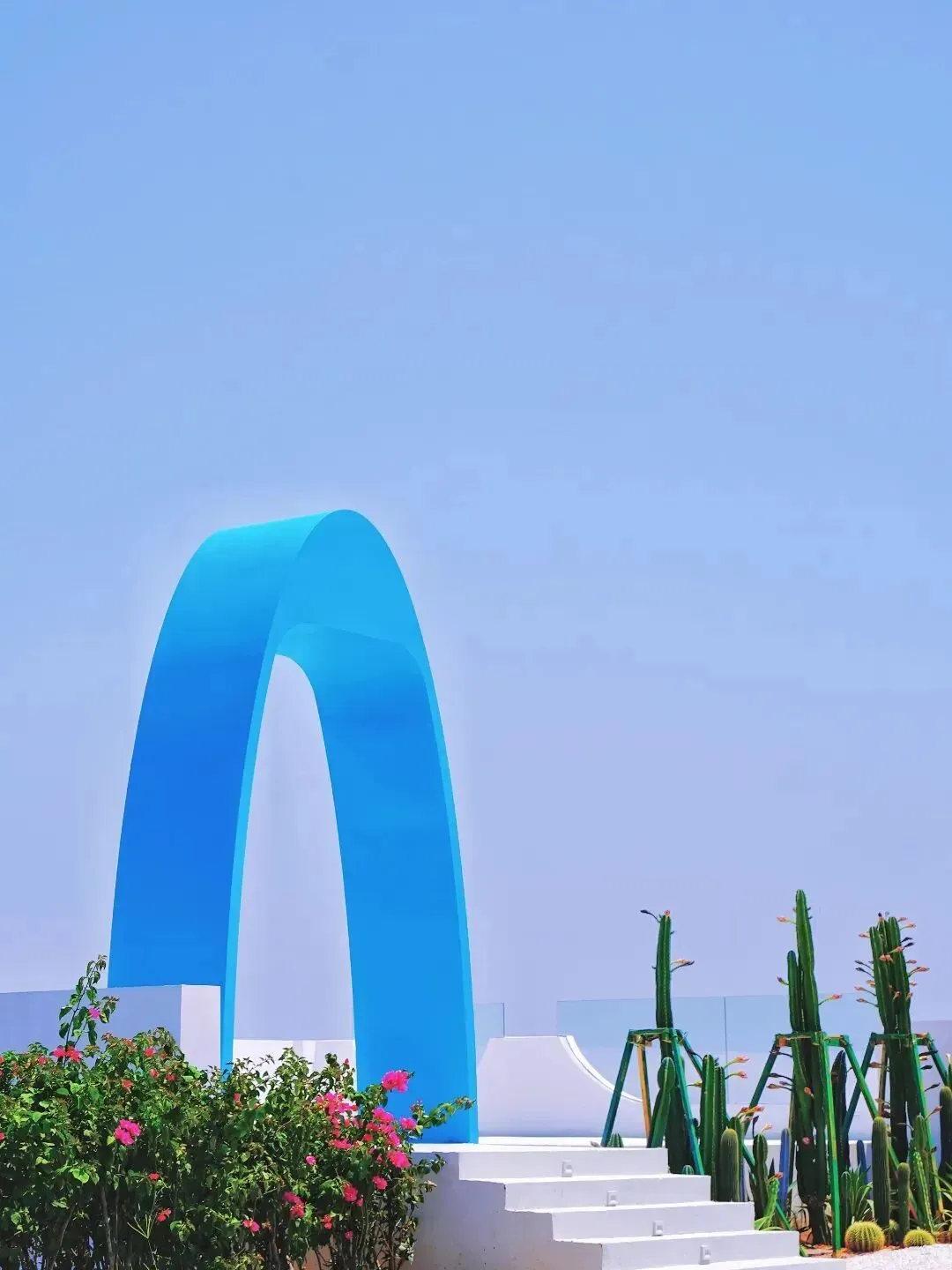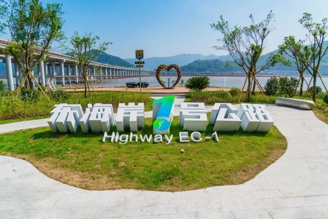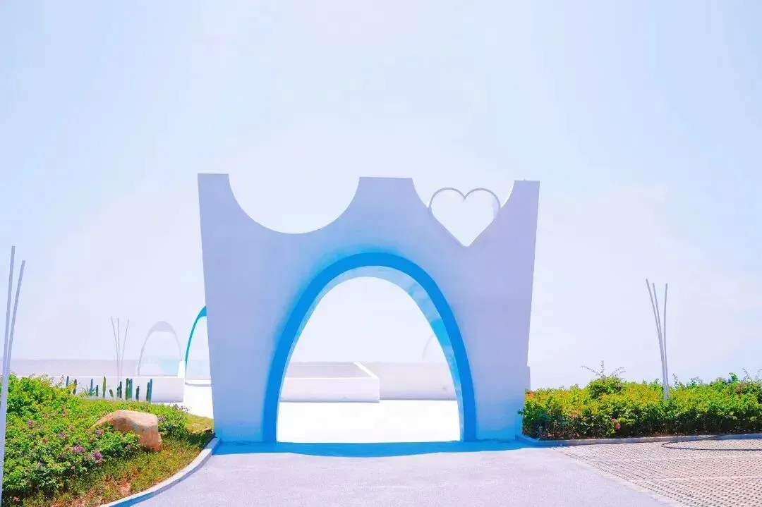 站在“无尽蓝”观景平台的入口,一面是碧水蓝天,一面是绿意盎然,山海美景映入眼帘。