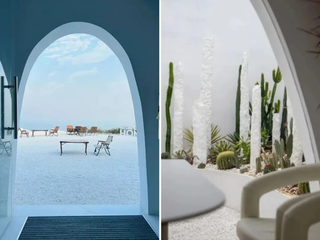 整体色调蓝白调,干净清爽的色系,有两层,上层比较经典的打卡点,下层就是咖啡馆。