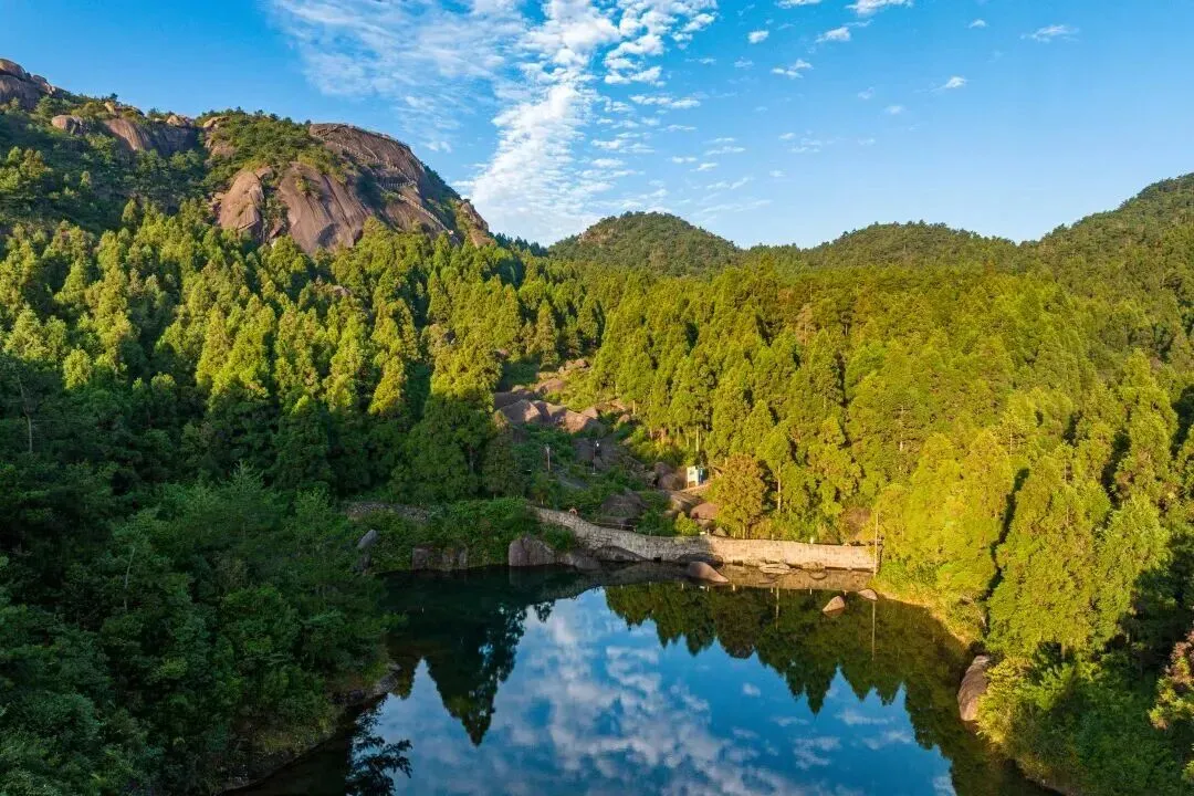 玉苍山景区森林率达96.66%,素来以“天然大氧吧”著称,是国家AAAA级景区。玉苍山主峰海拔921.5米,集山、石、溪、瀑、湖、林、寺等资源要素为一体,被誉为“苍南西部众山之祖”。