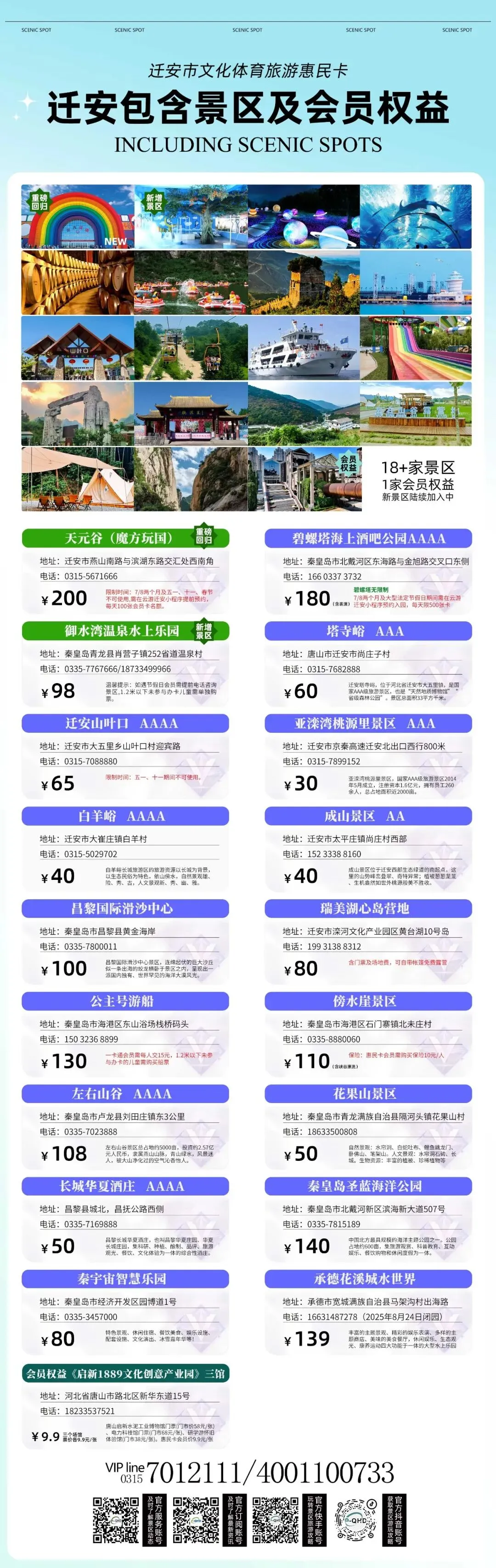 二、其他景区均无限制,更多畅玩资讯关注【迁安市文化旅游惠民卡】公众号。