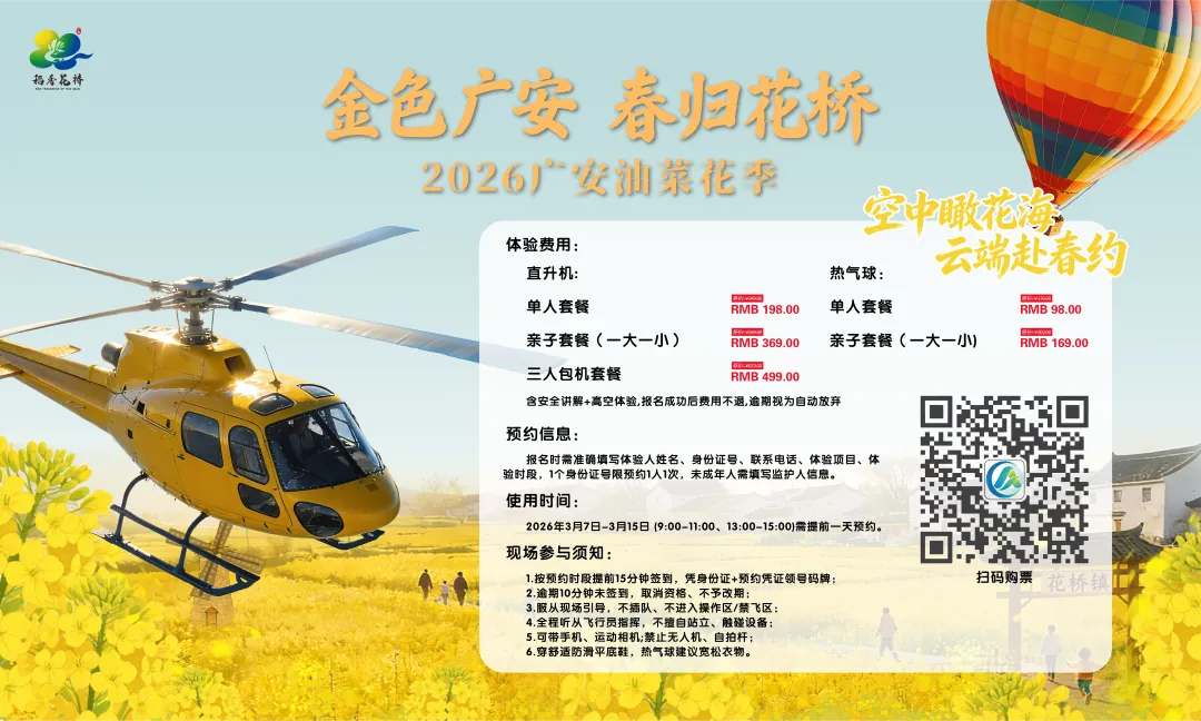 花桥金色賨韵景区高空赏花正式预约!直升机 + 热气球解锁春日新视角