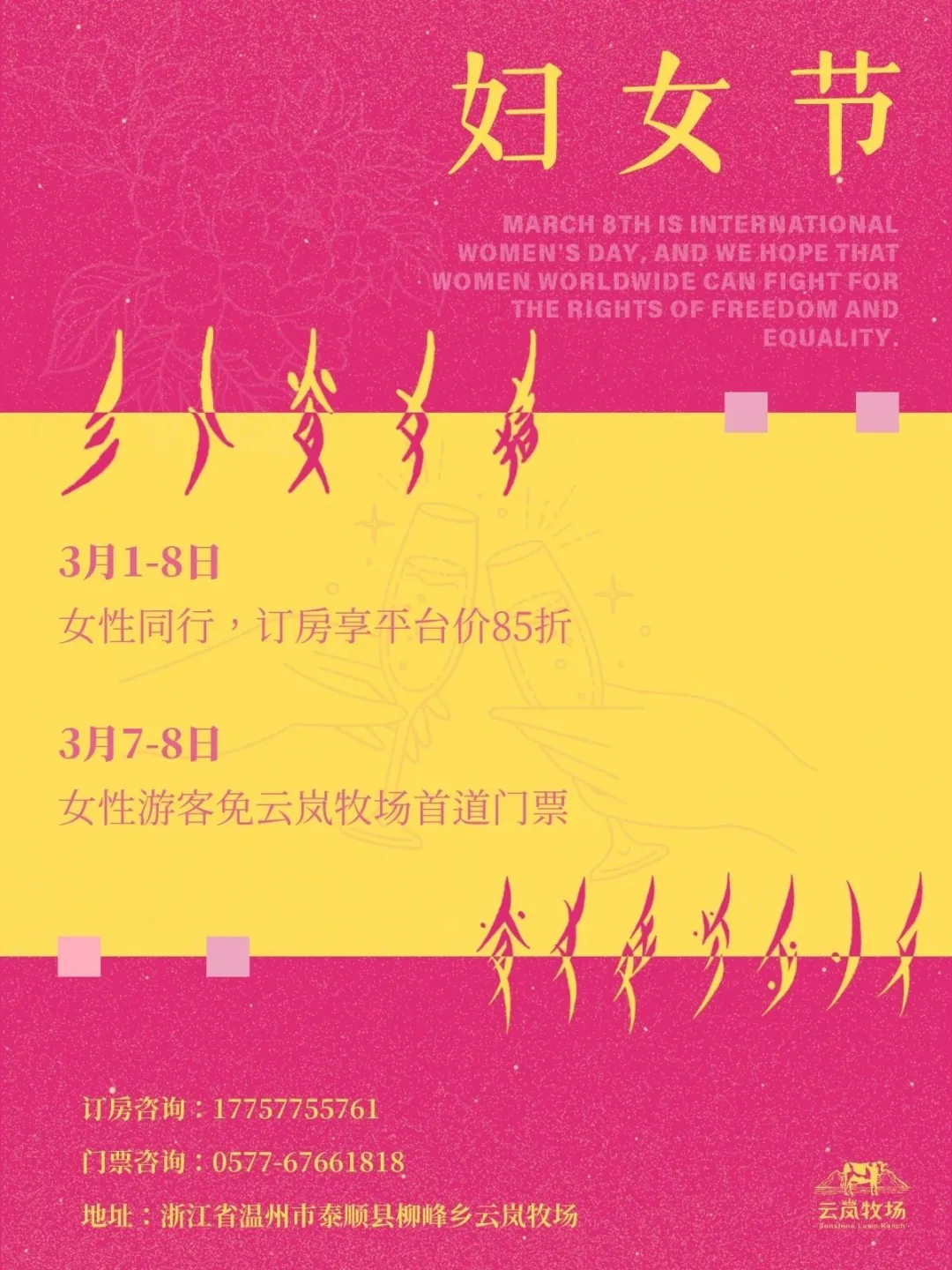 1️⃣ 3月7-8日女性游客免云岚牧场首道门票;