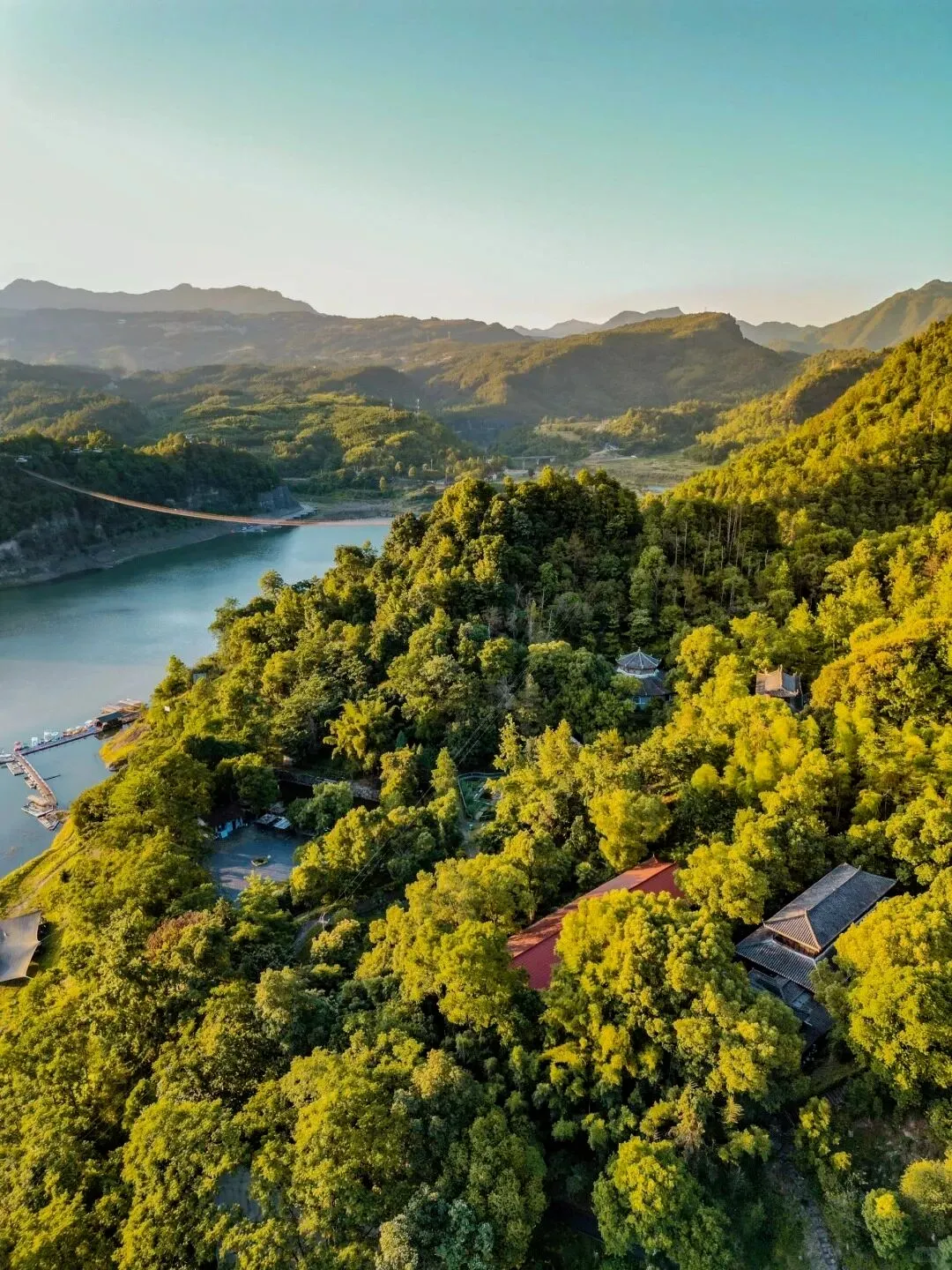 白鹤山庄坐落于飞云湖畔,一面靠山、三面环水,坐拥十里画廊,山水画卷。标志性的358米悬空铁索桥惊险出片,在这可以乘竹筏漫游碧波,玩沙滩车、星空帐篷、露营烧烤。山水清幽、项目丰富,一站式度假,吸氧解压超惬意。