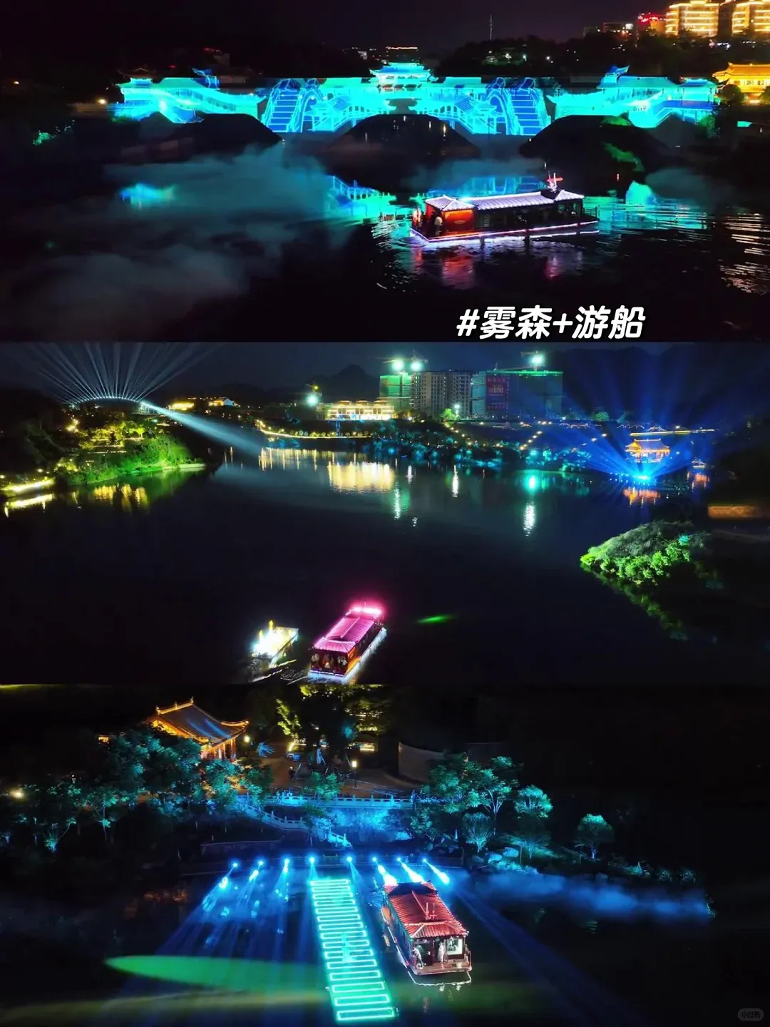 文祥湖夜游也太有氛围感啦!夜幕降临,坐船游湖,激光、雾森搭配实景演绎,把廊桥、非遗这些泰顺特色都藏进夜色里,沉浸式夜游体验感直接拉满。