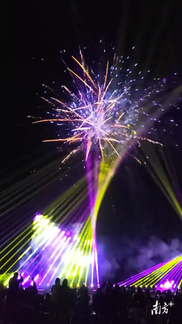 △春节期间景区的烟花表演。