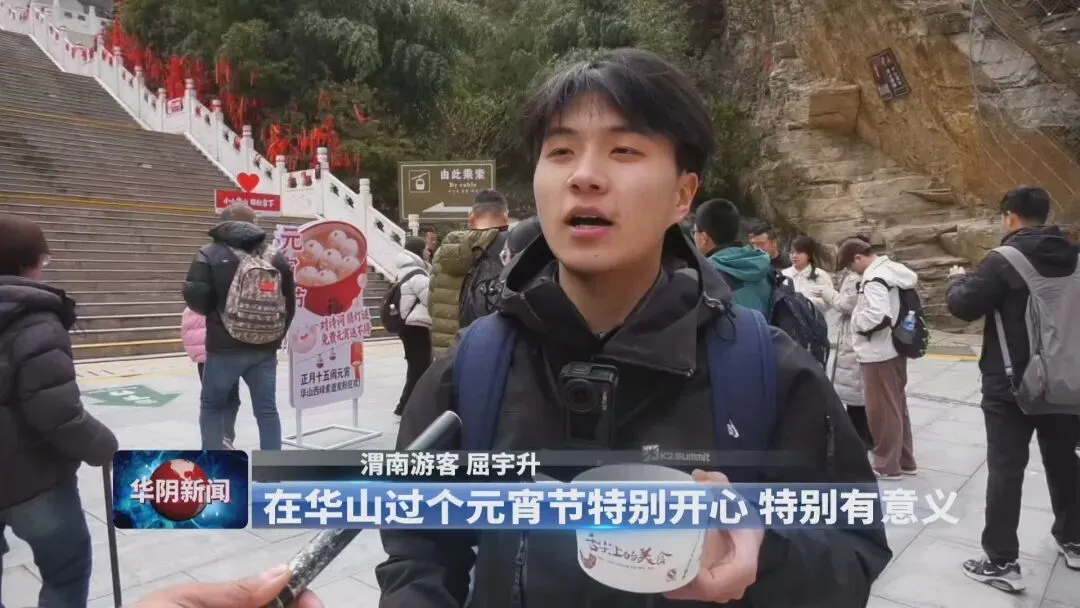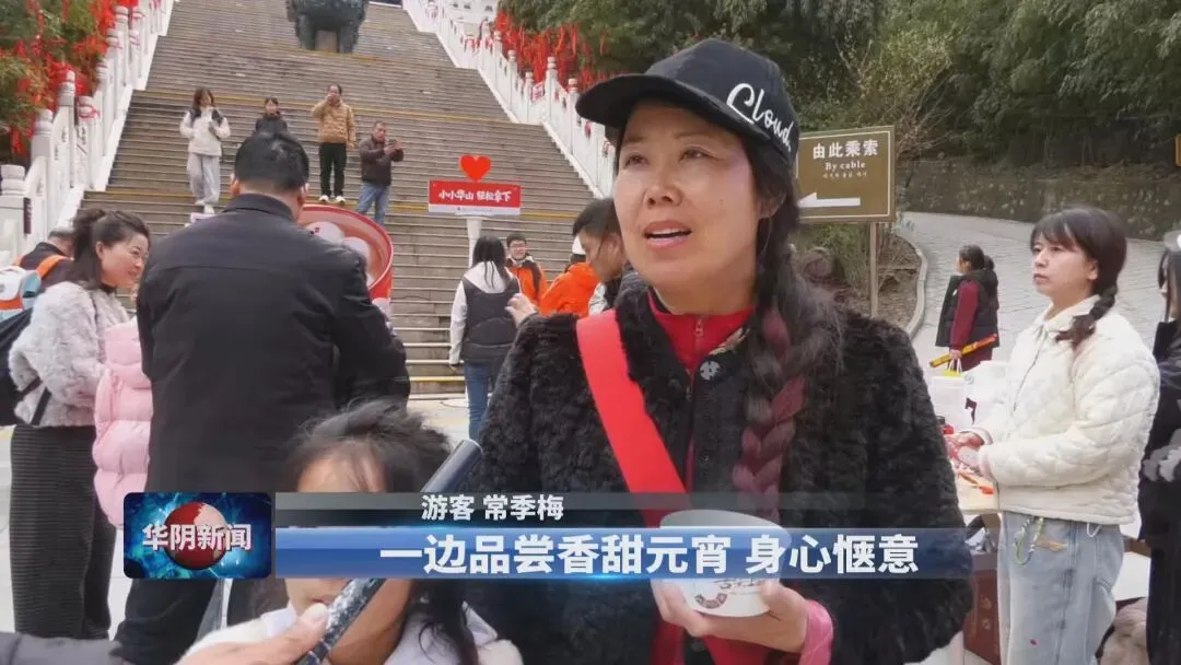 游客常季梅说,一边欣赏华山壮丽美景,一边品尝香甜元宵,身心惬意,这趟旅程非常难忘。
