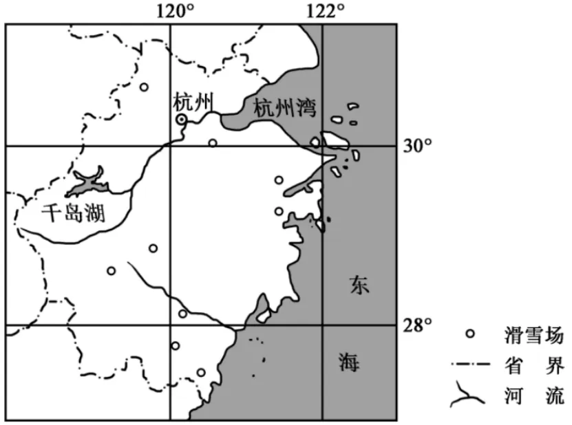 (1)分析浙江省室外滑雪场布局分散的原因。