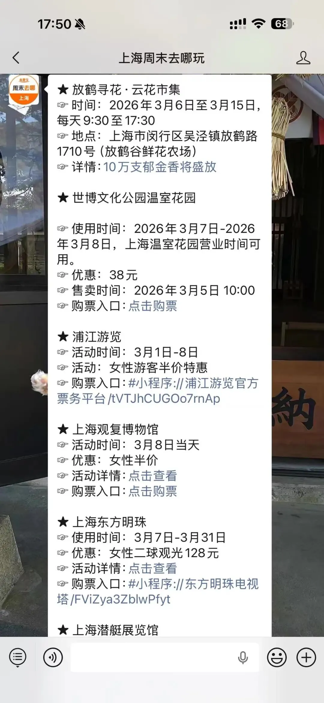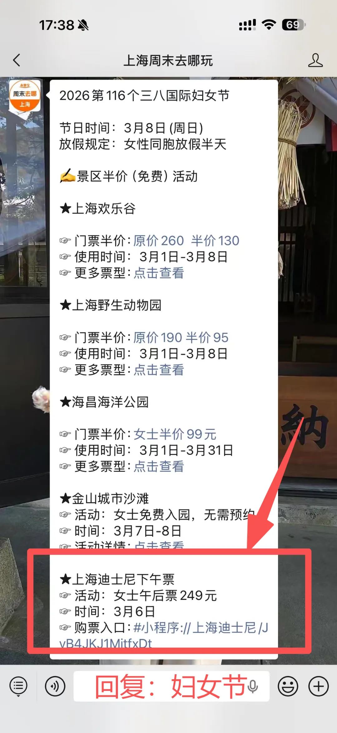 扫描下方二维码,关注上海周末去哪儿玩,后台对话框私信回复【妇女节】,获取半价景点购票入口。