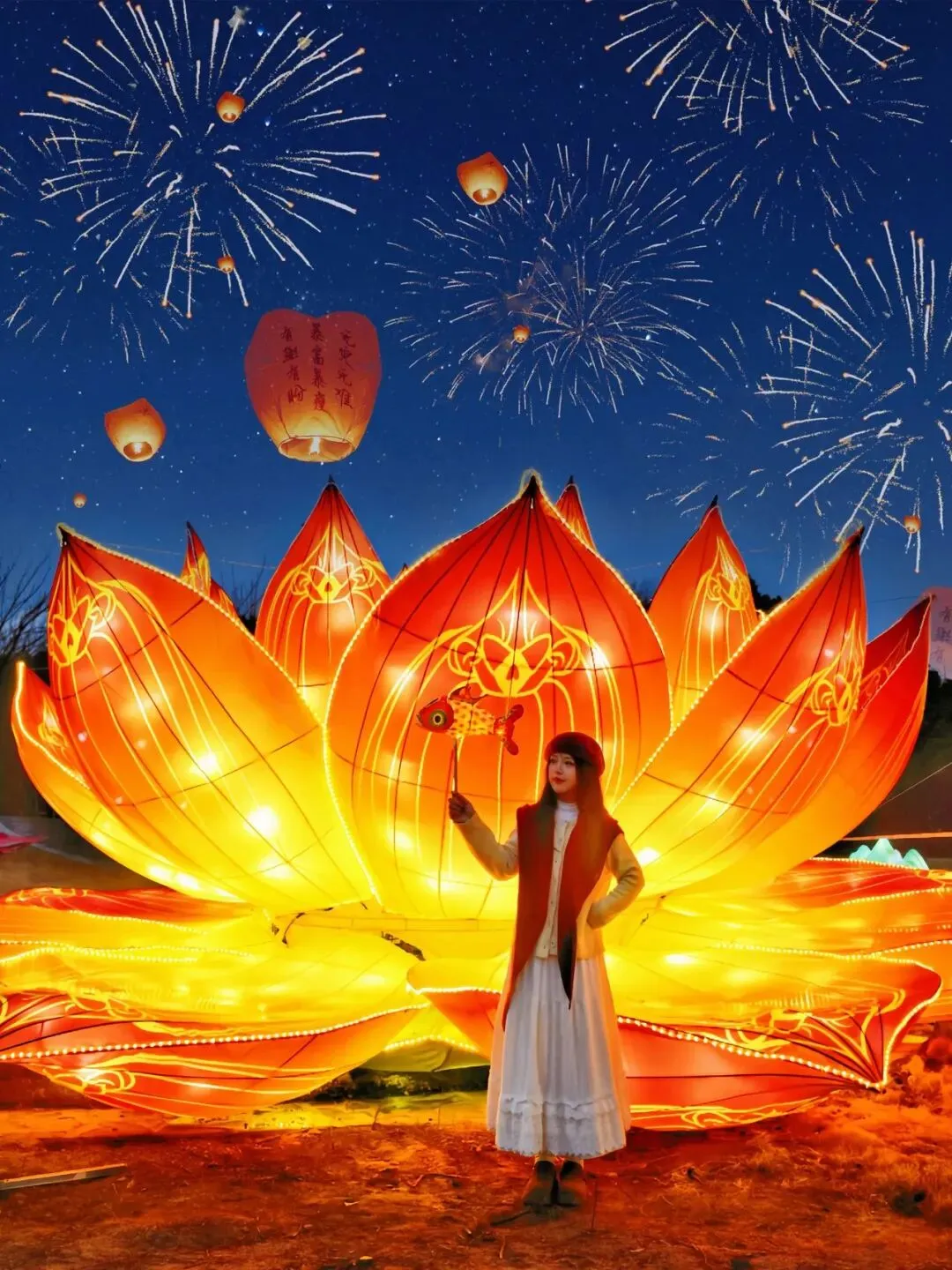 入夜后的茅山灯会更添女神节浪漫