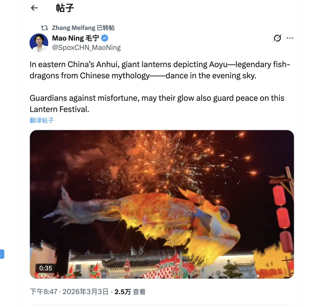 外交部新闻发言人转发