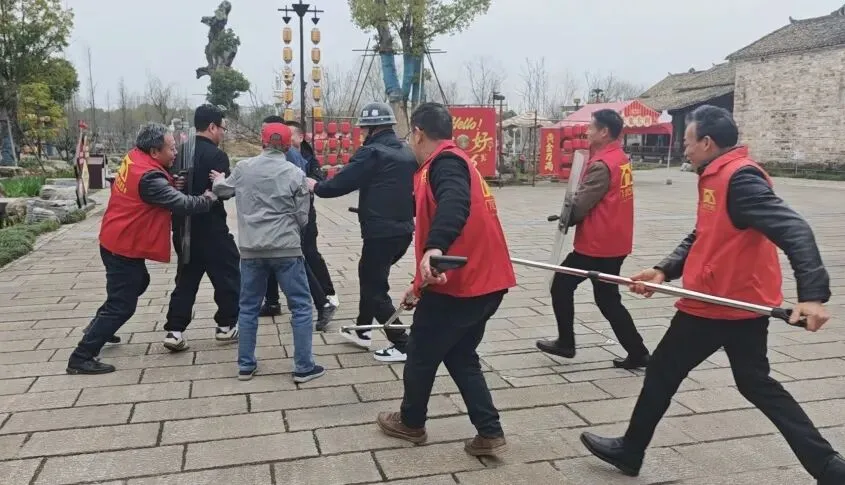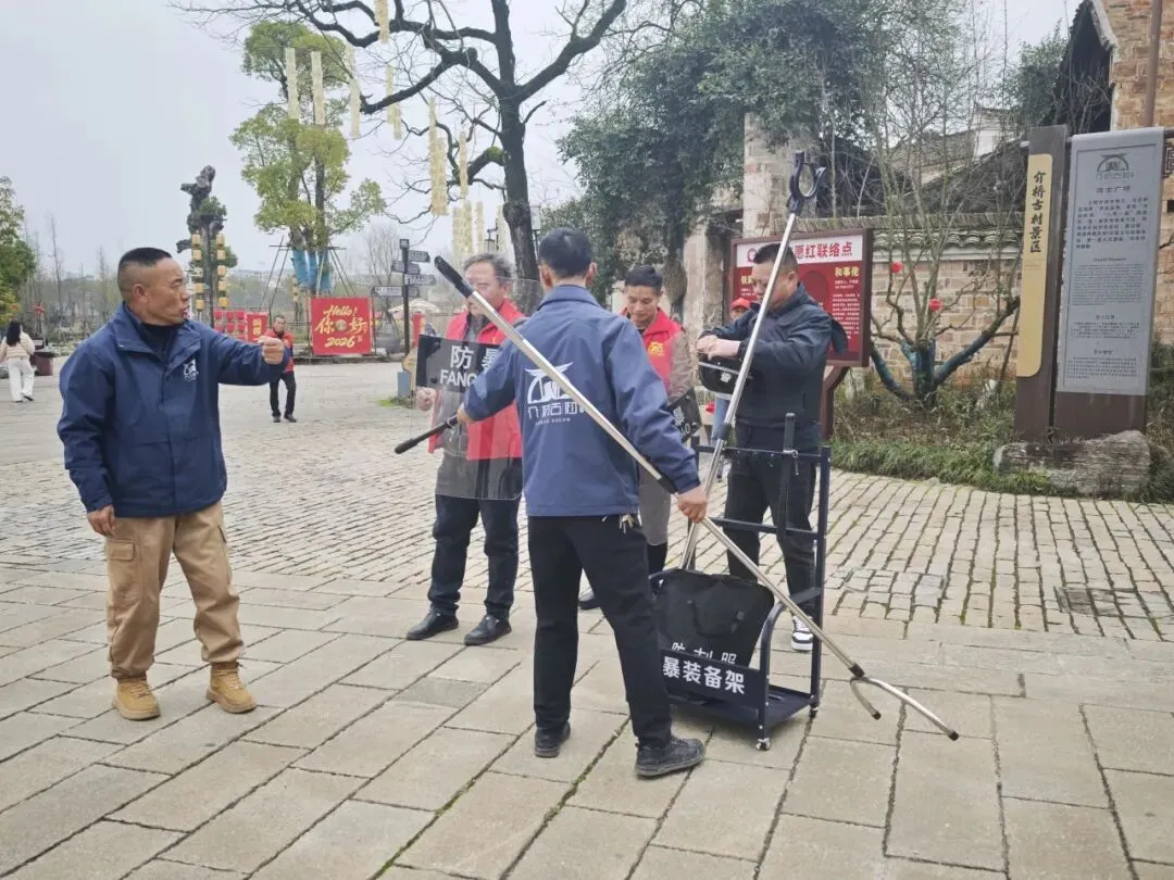 为提升景区综合安防水平,现场同步开展防暴演练,模拟突发场景,规范处置流程,强化安保人员应急反应与协同配合能力。