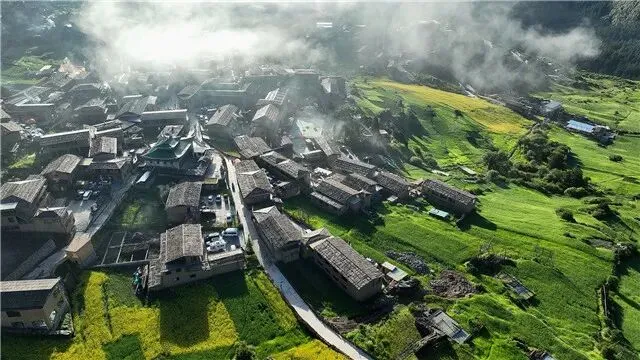 作为白龙江上游的水源涵养地,扎尕那以奇绝地形切割着高原水汽,在高寒与温润之间,织就出一片云雾缭绕、温凉共生的人间仙境。藏地先民依着山势与气候,在此繁衍生息,耕牧相间,造就了延续千年的立体农林牧系统,成为人与自然协同适应高原气候的活态典范。
