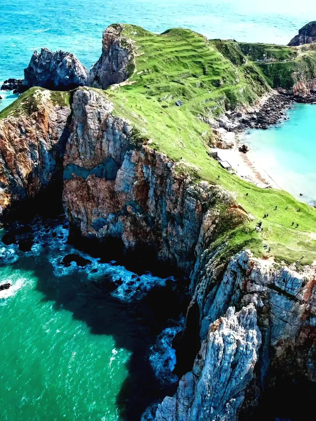 🌟🌟🌟东礵岛:人间塞尔达,跳岛行程的重点,大概停留了两小时。造型很独特的岛,一面是草原一面是悬崖,从空中看整个岛还是弓形的。