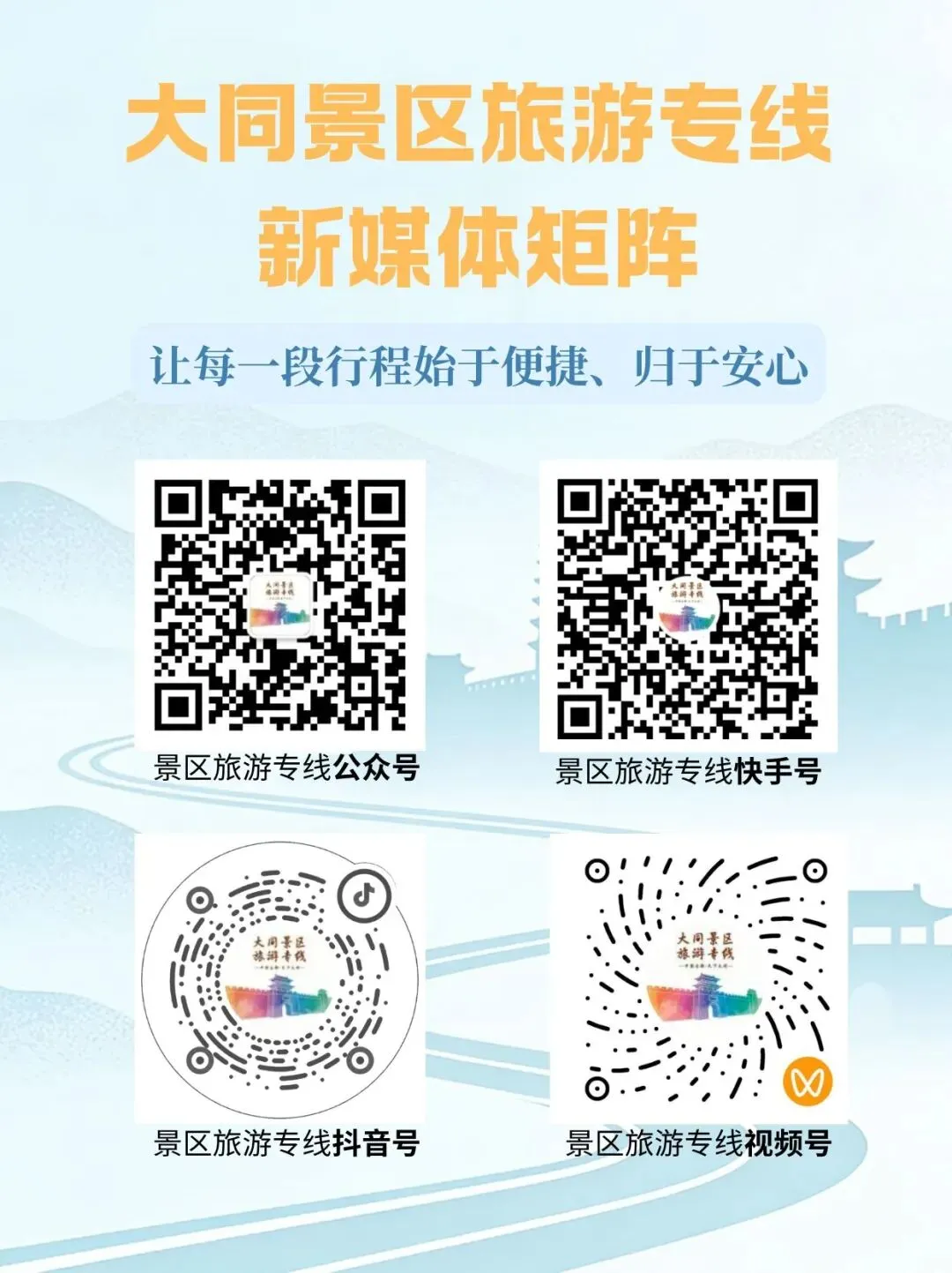 由众安公交运营的大同景区旅游专线(古城⇌恒山),自2026 年 3 月 4 日起执行最新发车时间。29元一站直达、新能源电车、省心省时,方便大家节假日出行,也请转给来大同旅游的亲友参考!