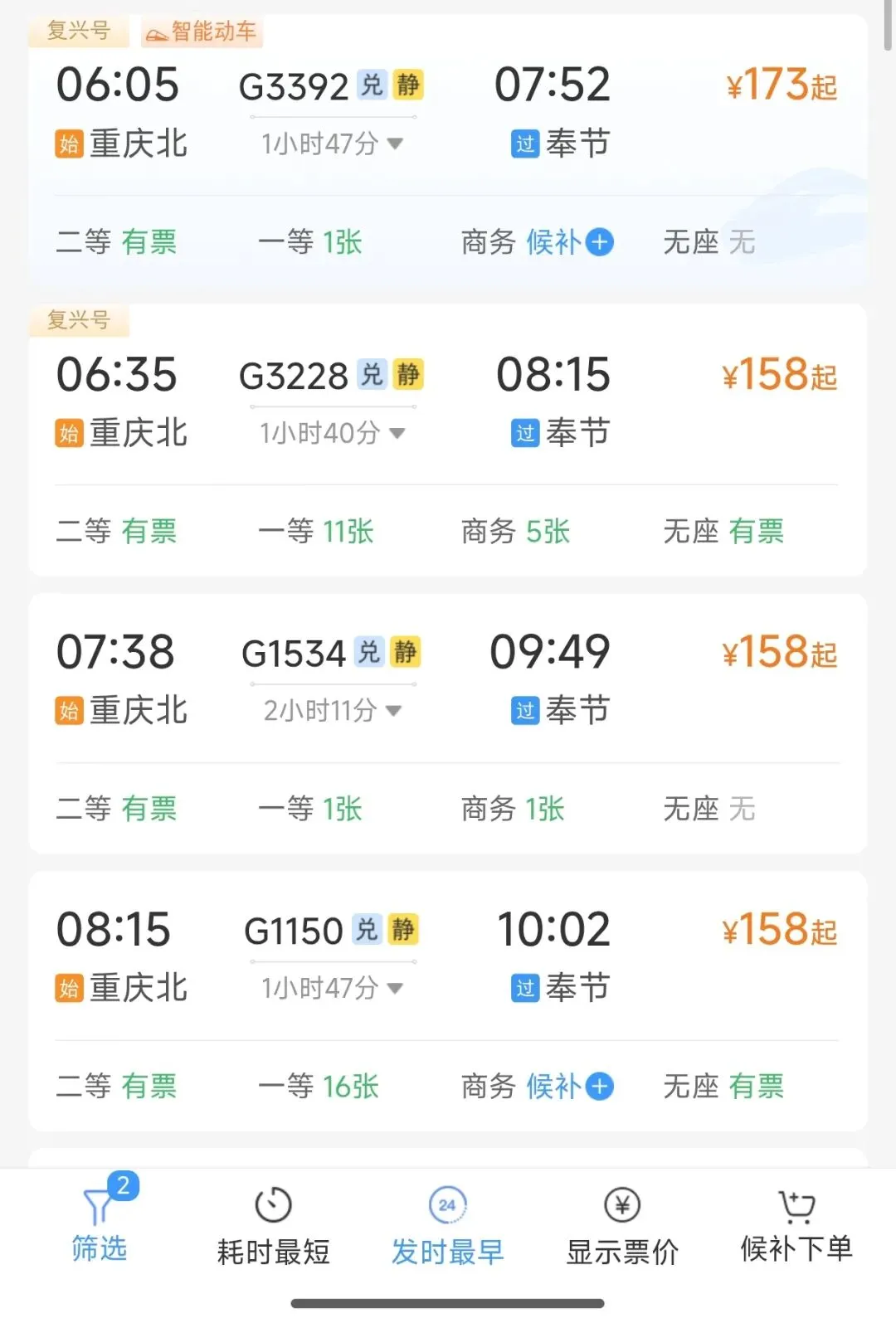 🚅出行选择>>乘坐高铁可直达奉节,重庆北站至奉节日均开行18列。