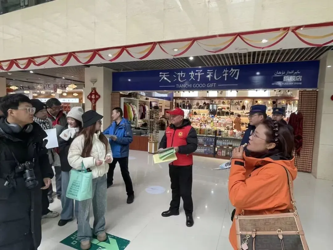 售票大厅内,“瑶池志愿红”成为一道亮眼风景线。志愿者们主动上前,向过往游客发放宣传手册、倡议书,详细讲解野生动植物保护相关法律法规、科普知识,以及景区内常见动植物的生态习性,耐心解答游客关于野保工作的各类疑问。“小朋友,景区里的一草一木、一虫一兽都是大自然的主人,我们要爱护它们,不采摘、不惊扰哦。”一句句温柔的叮嘱,不仅拉近了与游客的距离,更让野保理念扎根在孩童心中。