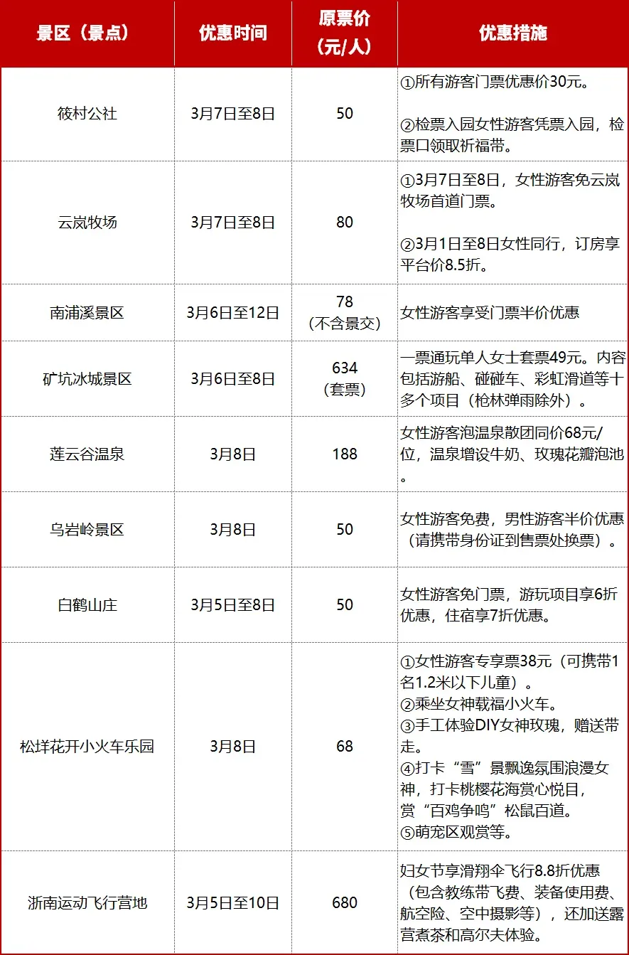温州部分景区免费、优惠!妇女节福利来了!