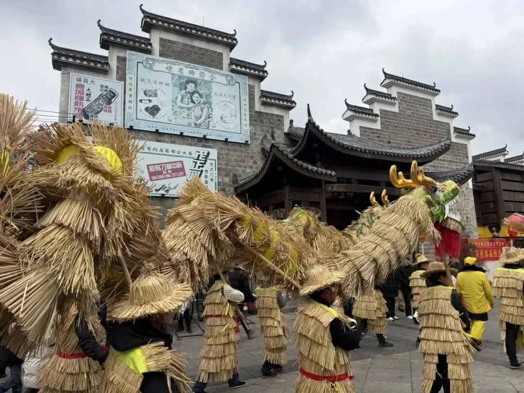 另一边,明清古巷巡游队伍同样热闹非凡。十二生肖的演员们穿梭在古巷间,与游客亲密互动;打击乐队鼓点铿锵,为巡游保驾护航;8条彩龙、彩莲船、蚌壳队伍沿着古巷路线缓缓前行,在永乐清平牌坊、马迹塘擂茶馆、皮影戏演出点等点位开展定点表演,古色古香的街巷与鲜活的民俗表演相映成趣,游客在逛古巷、赏民俗中感受元宵韵味。