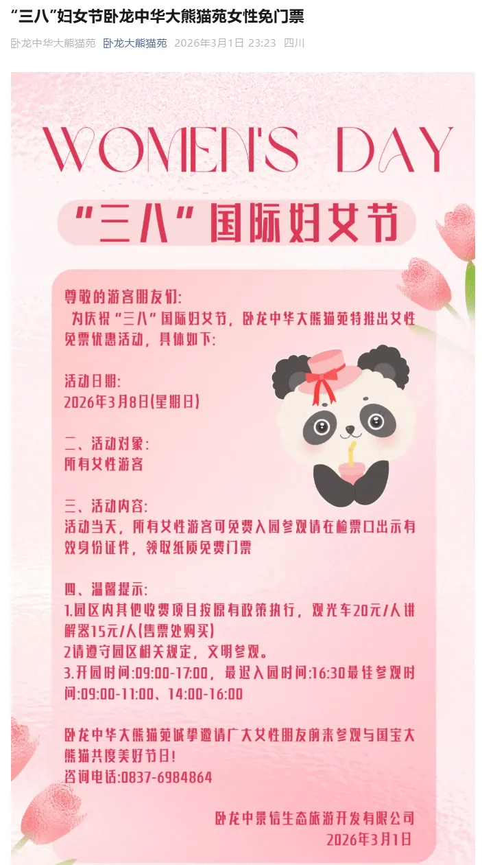 二、免票时间:2026年3月8日8:30-16:30。