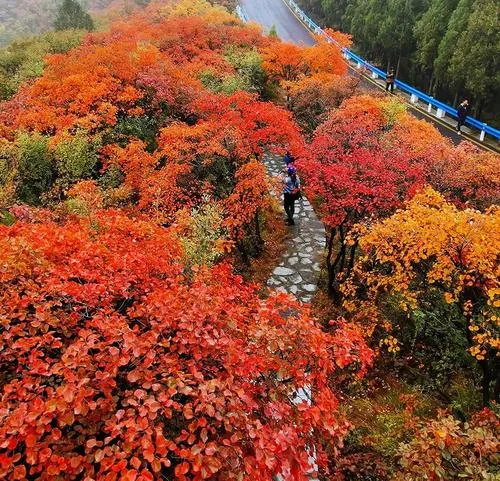 南方的秋天是渐变的、温和的,树叶慢慢变黄、慢慢飘落,整个过程很温柔,但北方的秋天不是这样,它是突然的、猛烈的,前一天可能还是满山绿色,一场霜降之后,第二天就全红了,这种变化是有冲击力的,是能让人感受到时间流逝的那种冲击力。靳家岭的红叶就是这种感觉,它不给你留犹豫的空间,要么你正好赶上了,要么你就错过了,没有中间状态,这种确定性在旅游体验里其实挺难得,因为它逼着你去珍惜当下这个时刻。
