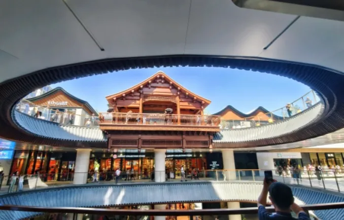 两者紧邻联动,形成“日玩主题乐园+夜享商旅休闲”的微度假闭环。北京环球度假区作为北京文旅地标,以全球热门IP 打造沉浸式游乐体验,年接待千万人次;“湾里” 是新一代TOD综合体,含王府井 WellTown(近500家品牌,首店占比50%)、汀云小镇(亲子研学+夜间经济业态)、诺岚酒店(无边泳池可览环球景观)三大板块,实现“游乐+购物+住宿+体验”一站式满足,覆盖全龄客群。