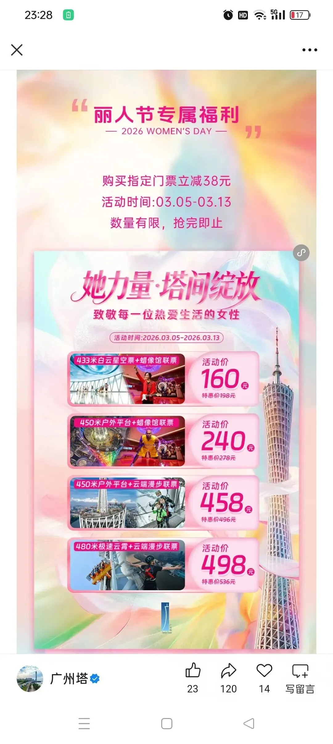 带话题 #我在广州塔塔顶发光# 打卡 关注广州塔文创福利官