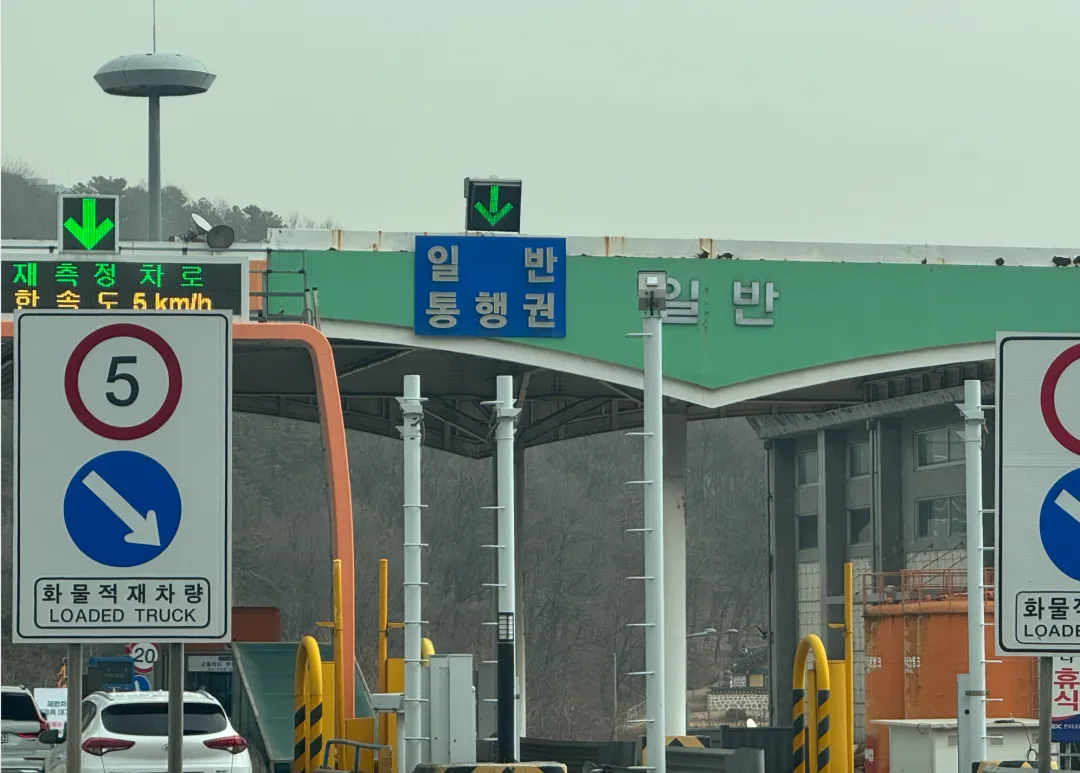 图3:收费口。虽然用屁股猜旁边两个韩文没准是“人工”,但焉知不是“货车”呢(😂其实这两个字是“一般”,表示“普通”出口……)
