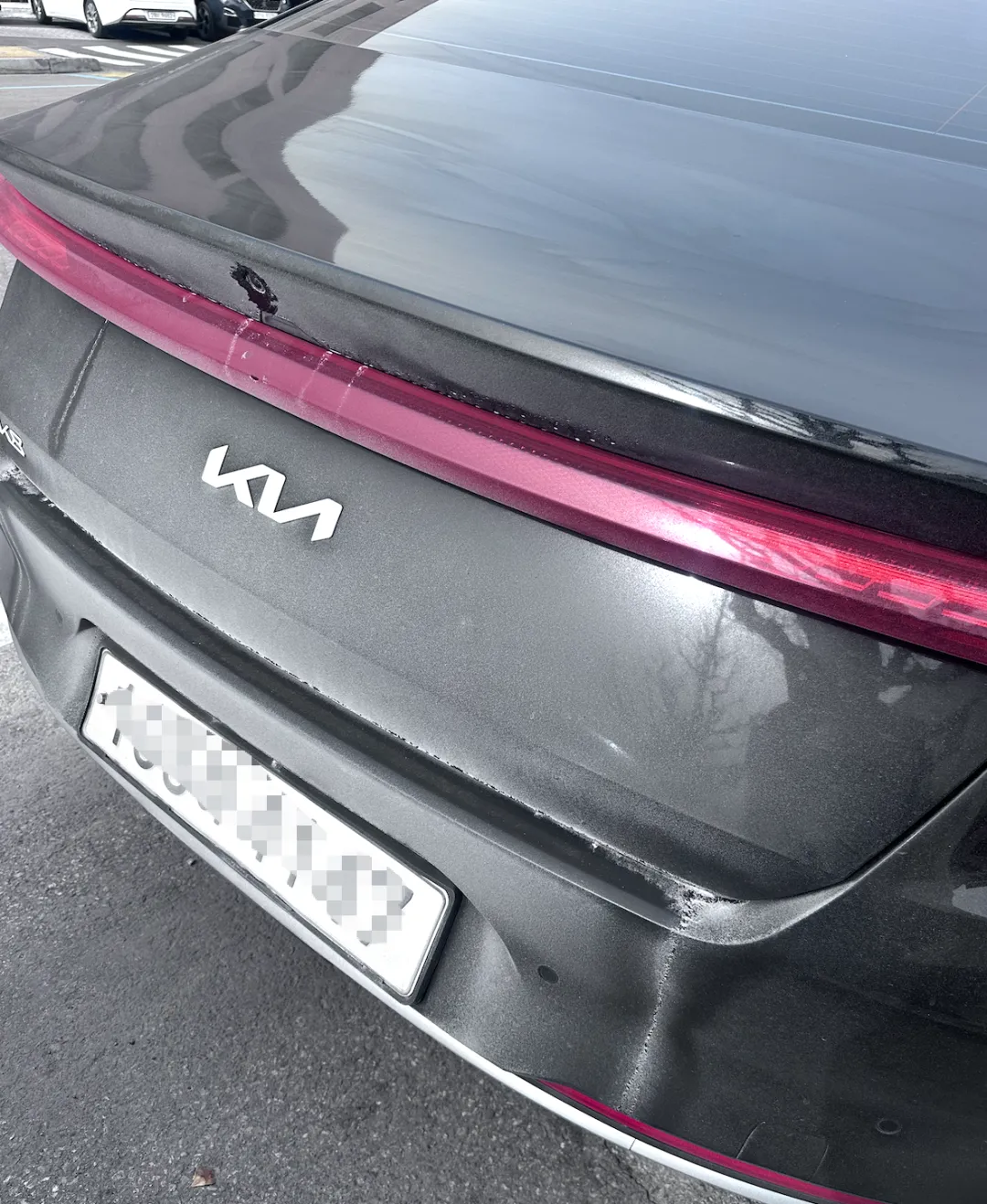 图5 阴雪天韩国高速一路几十公里不知道都是啥玩意,溅在窗玻璃一直刮不干净,停车后才发现是很多泥浆,厚厚一层凝固后极难处理,这卫生别说其他发达国家了,在国内也挺罕见。
