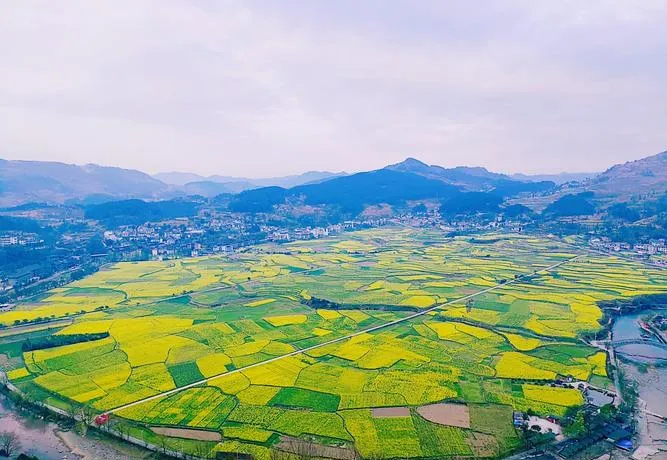 十里画廊这个名字听着像景区起的宣传语,但你去了就知道这个名字起得实在,它是一段沿着河谷修的公路,两边是连绵的农田和村落,这条路特别在它没有刻意造景,就是把原本当地人生活的区域串联起来,让你能看到一个完整的乡村生态系统在那运转,春天油菜花开的时候,整个河谷都是黄色的,但更值得看的是其他季节,你会看到农民在田里干活,看到水牛在水田里走,看到村里的老人坐在门口晒太阳,这些画面让你明白真正的田园不是摆拍出来的,是劳作和生活自然形成的。