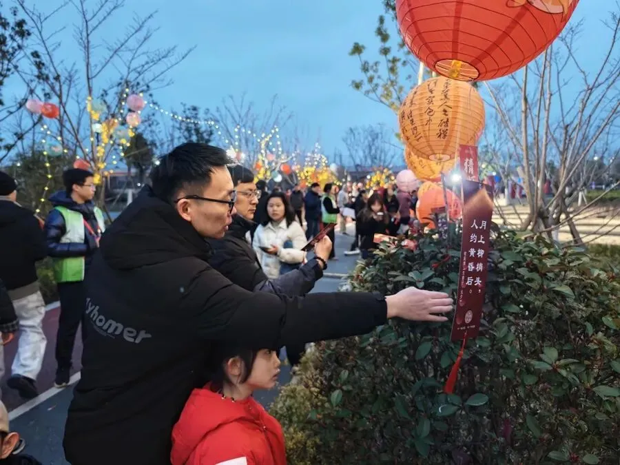 “这次的灯会很好看,很热闹!无人机全部飞起来组成的祝福图案震撼又暖心。”游客李女士就住在附近,她说,很喜欢灯会的活动内容,这次与同伴一同游园,打卡拍照,感受到了罗店满满的年味,也解锁了家附近不一样的玩法。游客刘女士也专程带儿子前来游园,猜灯谜、吃元宵、赏花灯,带孩子沉浸式体验元宵佳节的传统文化氛围,“孩子喜欢热闹,这次下班专门带他过来参加活动,我们玩得很开心。也希望借着这趟游园可以早早在他心中种下喜爱传统文化的种子,领略江南年味。”