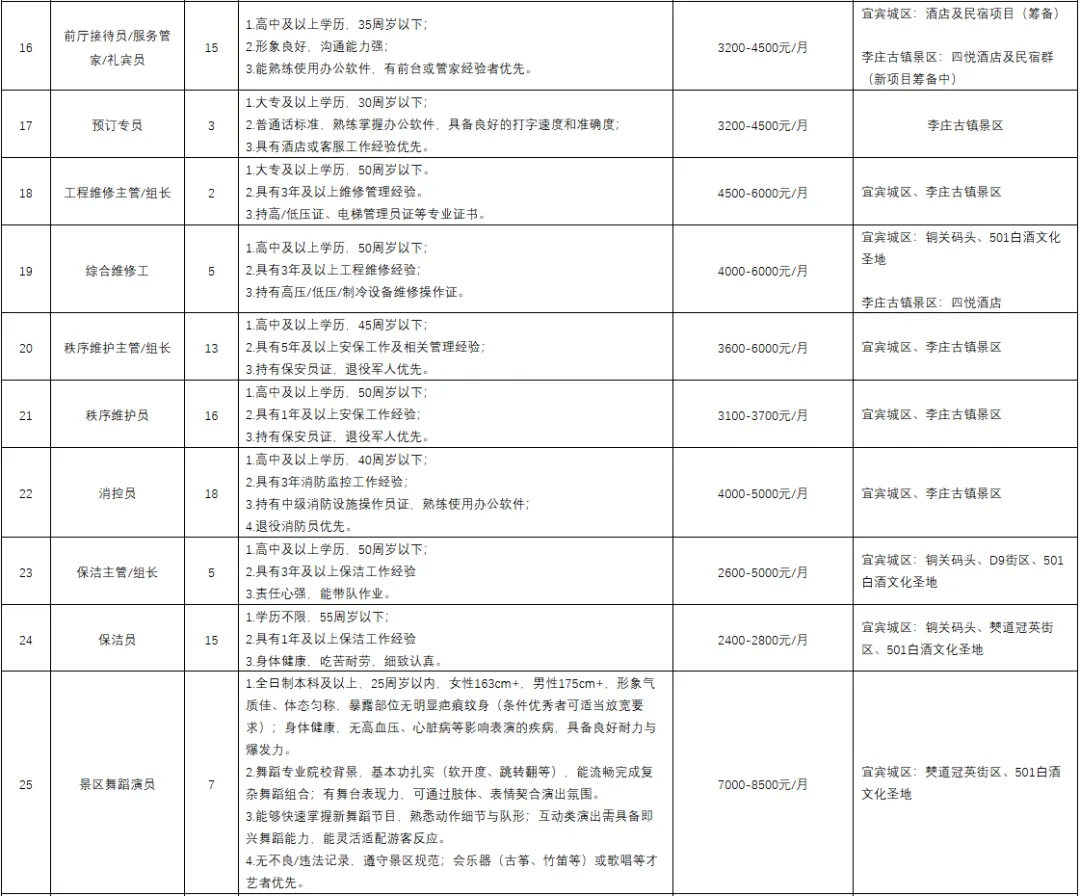 四川同创凯宏人力资源管理有限公司(以下简称“公司”)成立于2016年,专注于为客户单位提供专业的劳务派遣和人力资源管理外包服务,拥有正规的劳务派遣资质。现受宜宾翠旅投集团有限公司委托,面向社会公开招聘186名文旅一线运营岗位人员,派遣至翠旅投集团下属公司运营管理的宜宾城区僰道冠英街区、501白酒文化圣地、铜关码头以及李庄古镇月亮田景区工作。