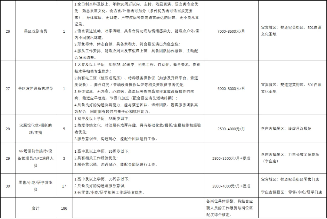 宜宾城区项目及李庄古镇景区2026年第一批次招聘公告