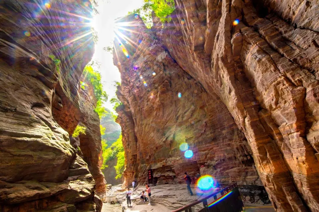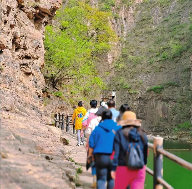 行走在红岩峡谷之间,两侧峭壁如削,高耸入云;脚下清溪潺潺,串起如珠玉般的潭水,春日的阳光透过峡谷缝隙洒下,为这幽深的峡谷平添了几分灵动与温柔。