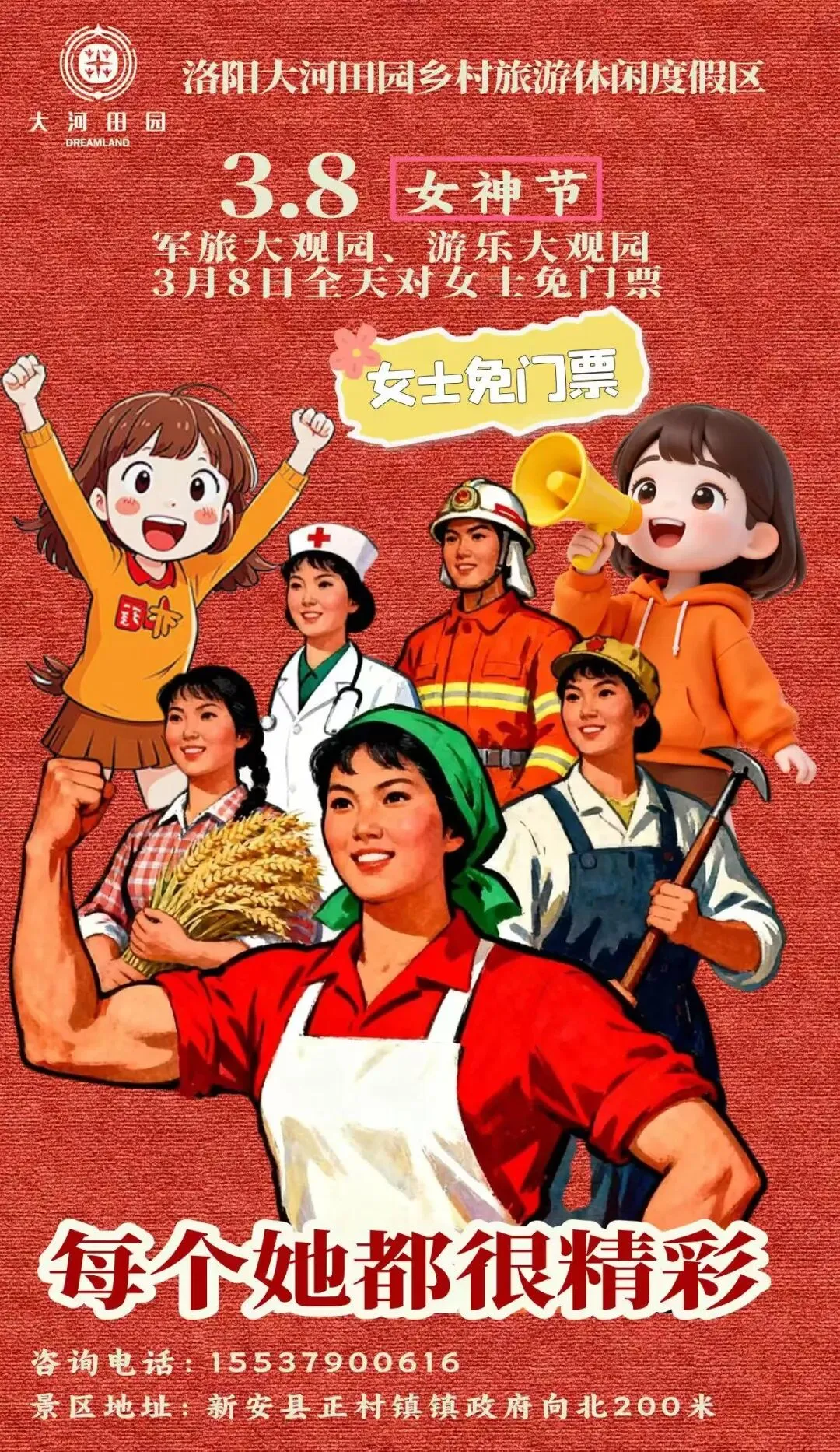 优惠内容:女士免门票,男士门票半价 (2026年3月8日)