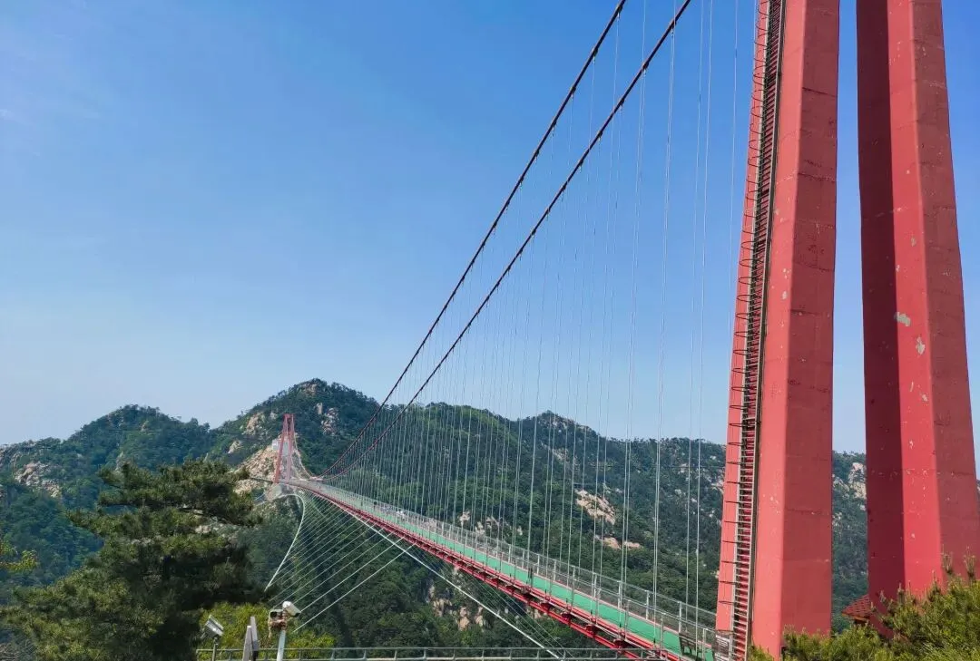 中餐自理--望海楼--悬崖栈道--齐鲁地、瞻鲁台、丹丘谪仙、大旺环等景点---世界第一人行悬索桥--玉皇宫,拜玉帝、寻仙踪---一线天、百寿峰、大福石等景点--塔山玻璃观景平台。(原路返回至东门)游览结束,4点景区停车场乘车返回。