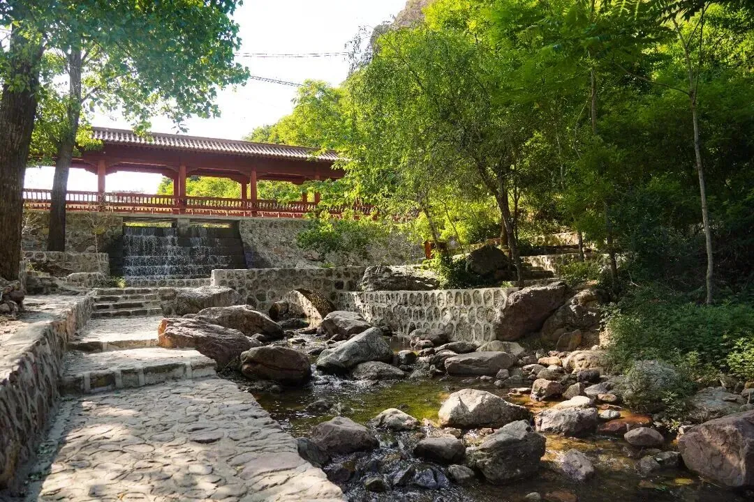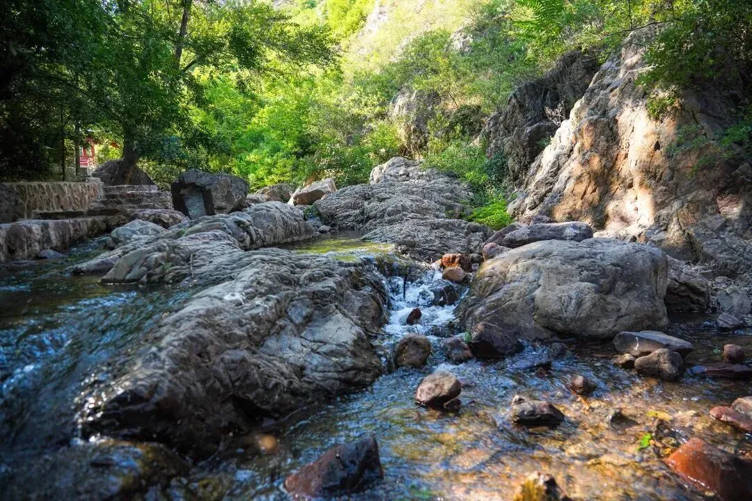 水声叮咚,像是大自然弹奏的迎宾曲。一路溯溪而上,阳光透过新绿的枝叶洒下斑驳光影,空气中弥漫着水汽与草木的清香。