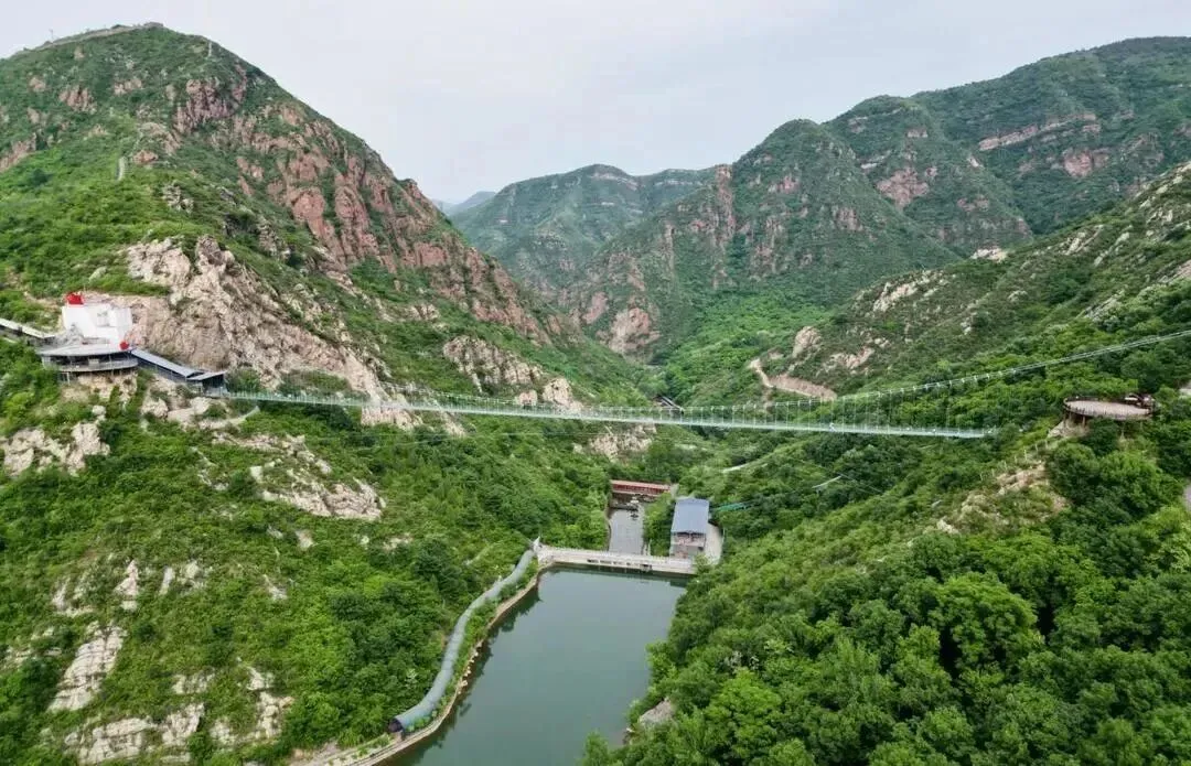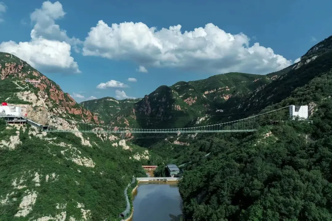 若说幽谷是春天的低语,那飞云天桥便是春日里的高声咏叹。这座全长266米、垂直落差106米的全透明玻璃吊桥,横跨两山之间,气势如虹。