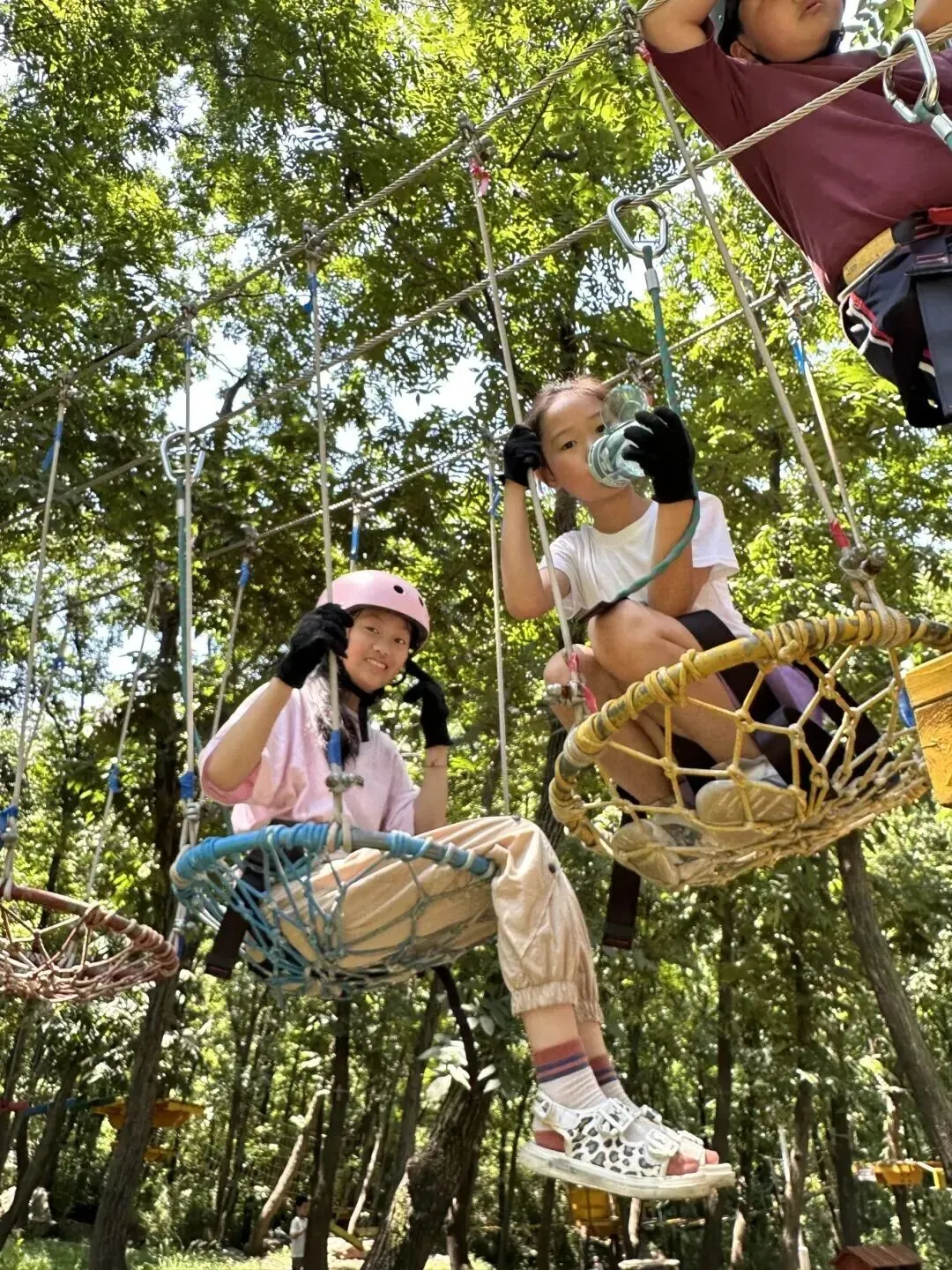 踏上桥,仿佛漫步云端,脚下是苍翠的林海和渐醒的溪谷,春风从四面八方涌来,吹散了所有顾虑。有人尖叫着扶墙而过,有人大笑着迎风拍照,每一步都充满了挑战的乐趣。