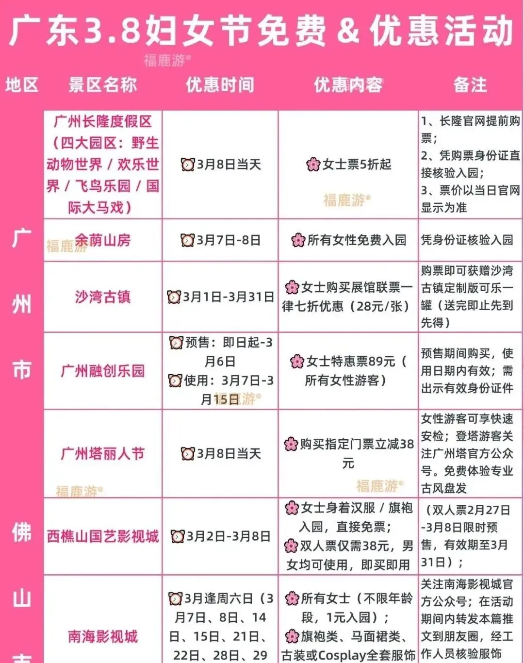 女士免门票福利:3月7日至8日,所有女性游客免景区门票。