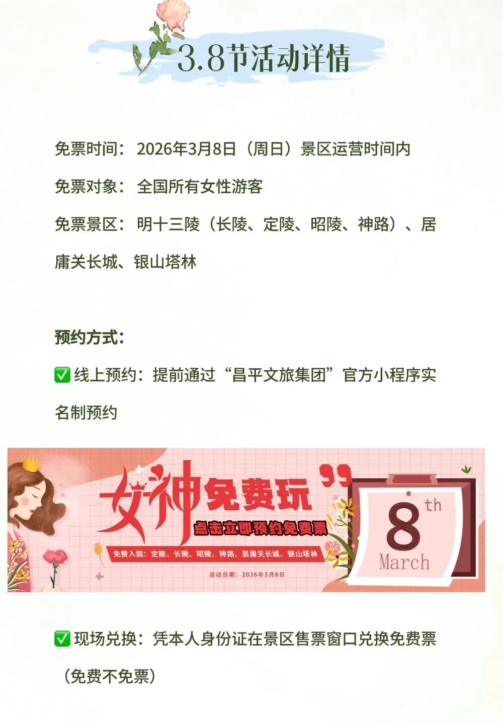 重磅!3月8日全国女性免费游昌平六大景区!明十三陵、居庸关、银山塔林春日美景抢先看