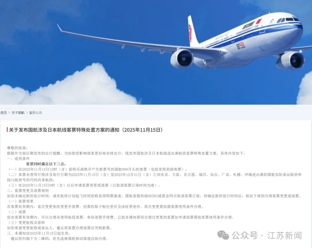 各航司的政策核心条款基本一致,普遍适用于出行日期在2025年11月15日至12月31日之间的客票,涉及往返东京、大阪、福冈、札幌、冲绳等日本主要城市的航班。