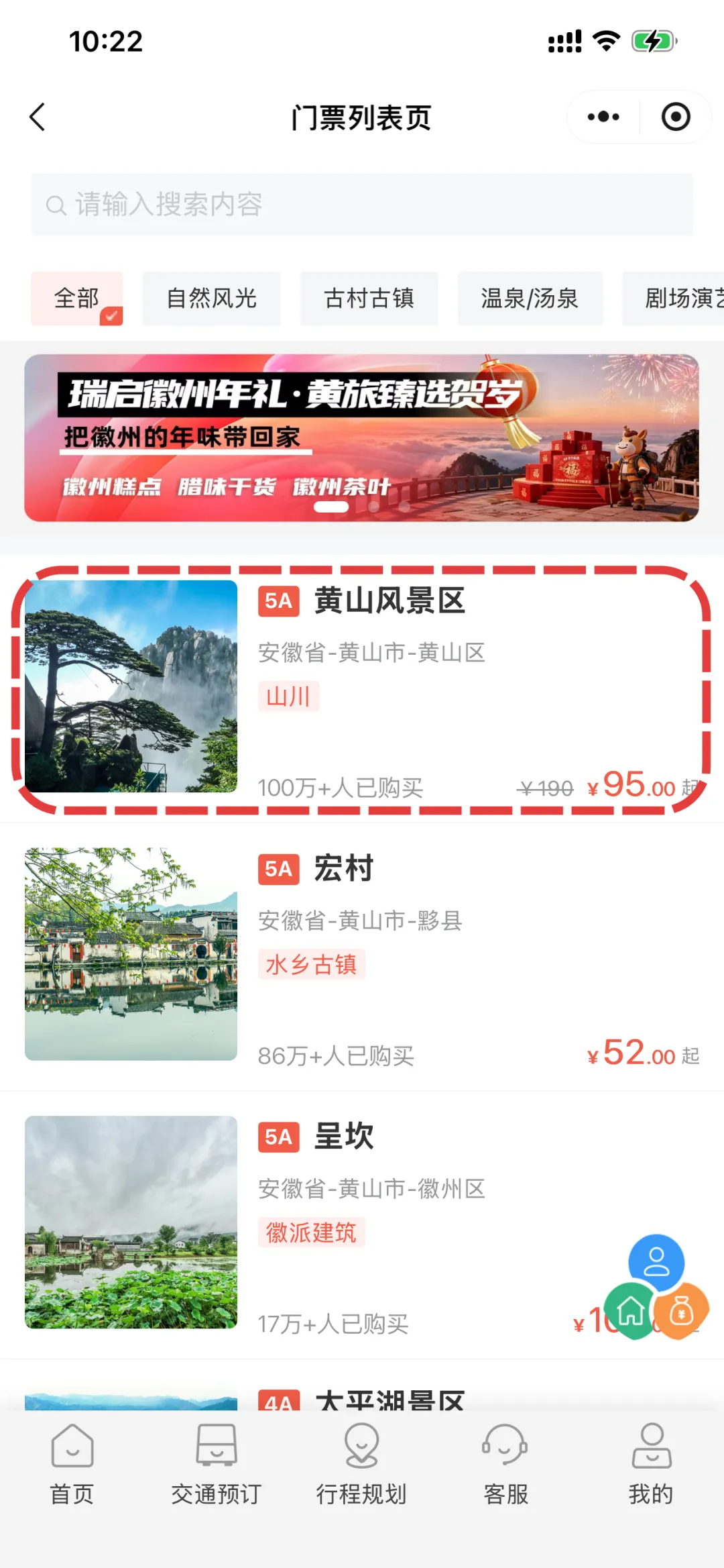黄山风景区活动门票预约