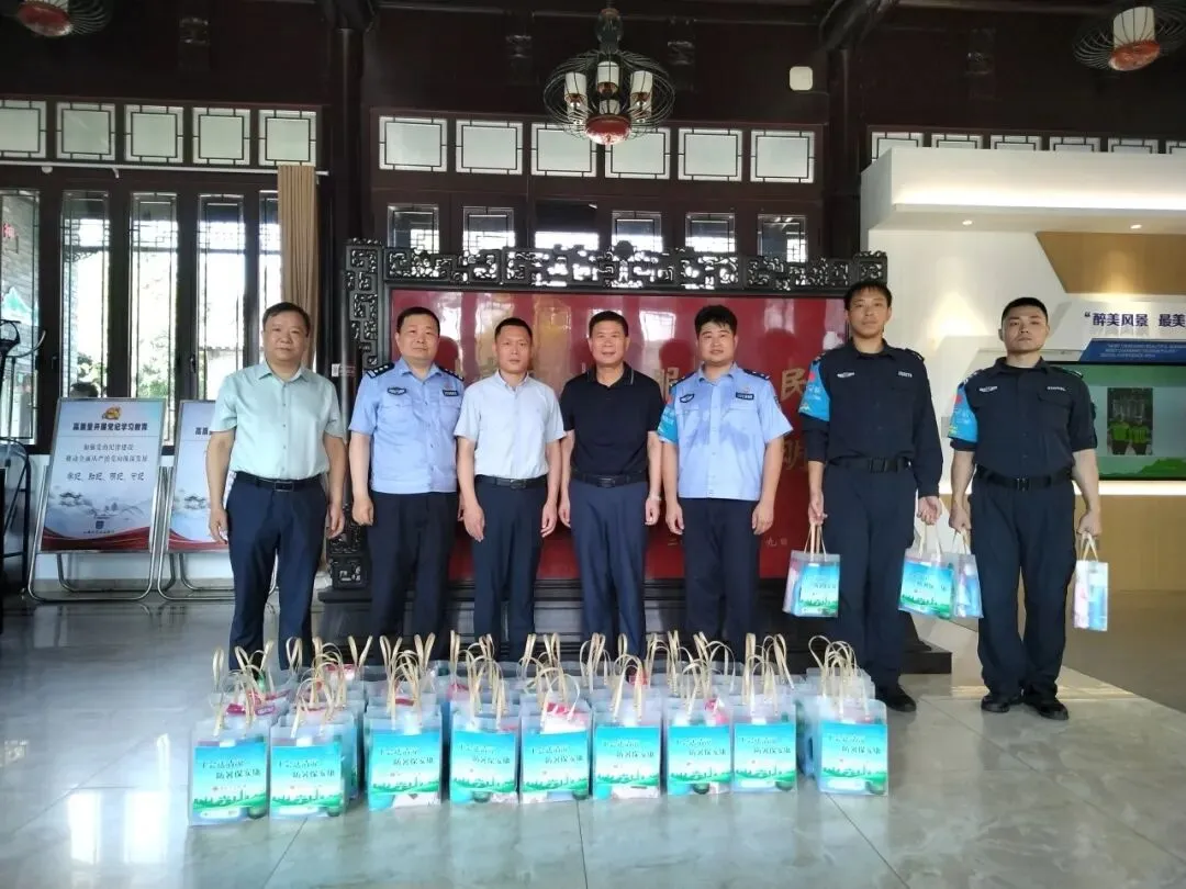 “高温天气,工作辛苦,大家要劳逸结合,做好防护,确保安全生产和身体健康。“每到一处,景区领导都向户外高温一线作业职工赠送防暑降温用品,督促企业落实防暑降温相关政策规定,叮嘱大家做好防暑降温和安全生产各项工作。