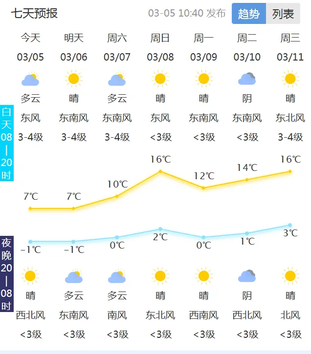 明天白天:晴转阴 风向风速:偏南风2—3级 最高气温:8℃