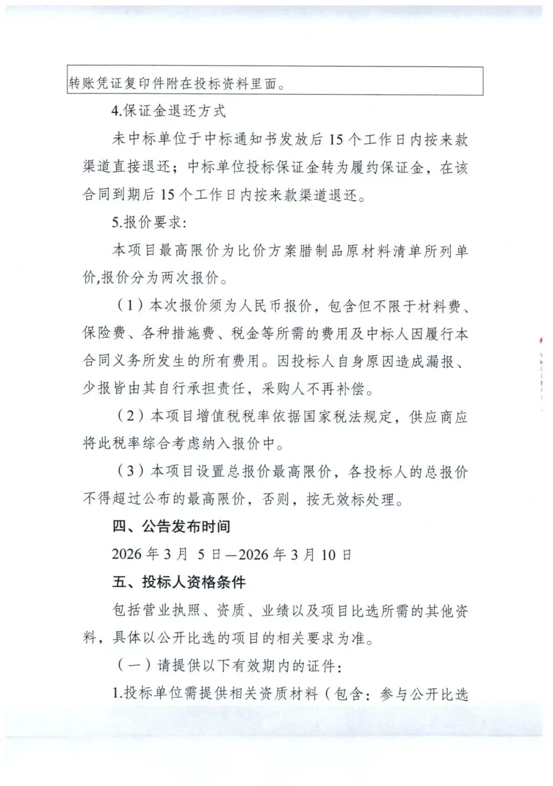 重庆金佛山山水文旅发展集团有限公司南川旅游景区管理分公司关于景区管理分公司腊制品原材料比选函(第二次)