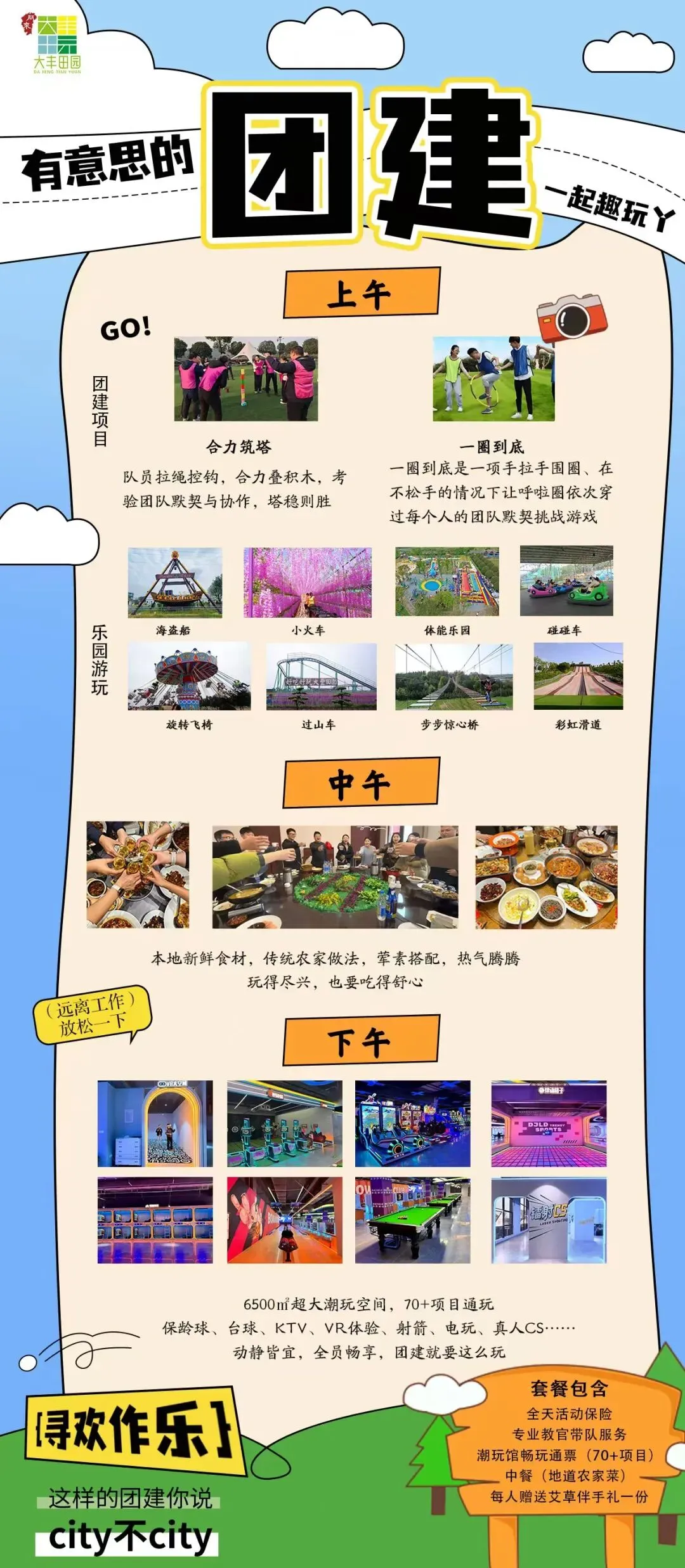 景区全年承接大型团建活动,活动设有合力助塔、一圈到底等有趣团建项目,还有6500平米的超大潮玩空间供大家一镜玩到底。